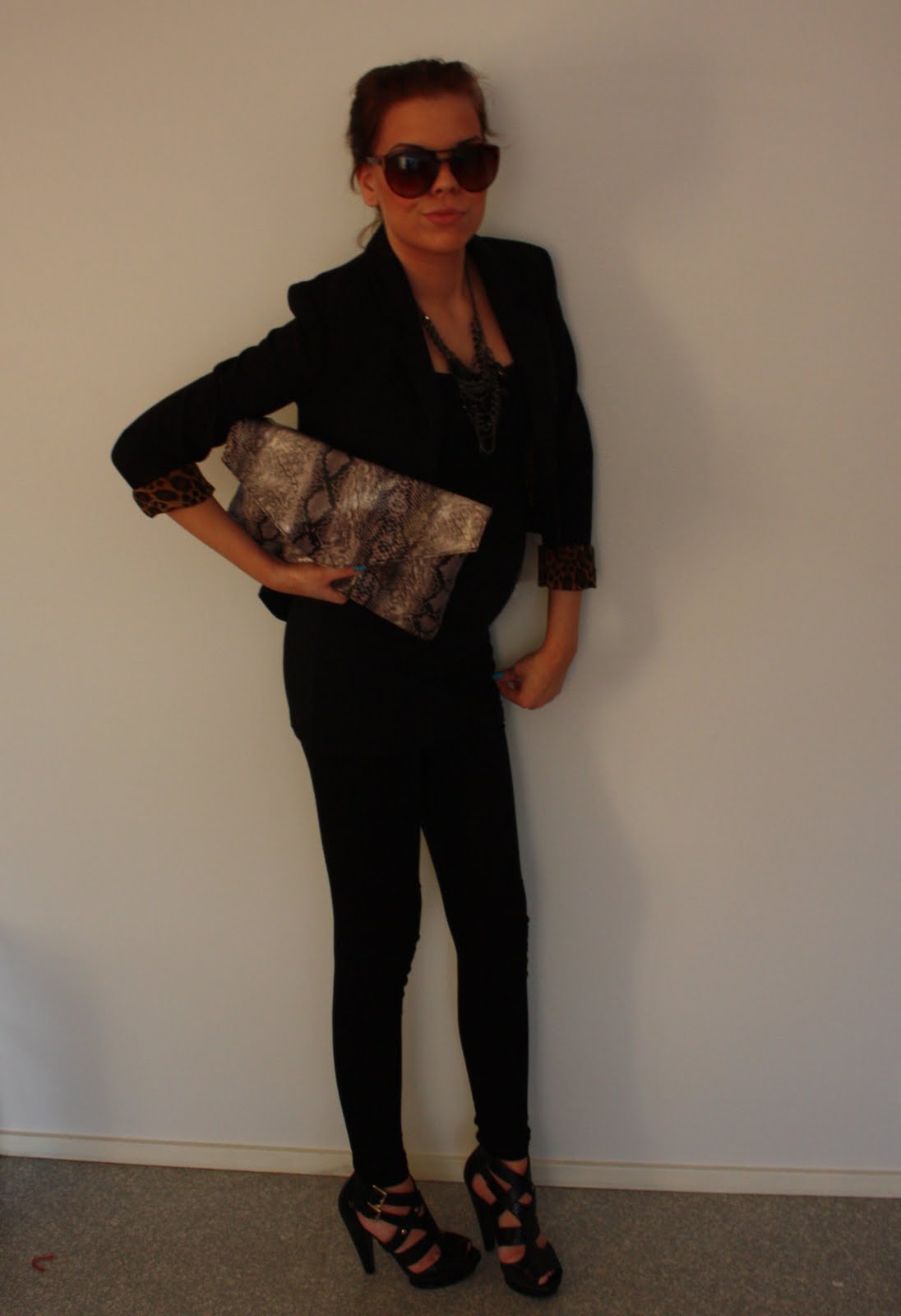 | Päivän asu: Bleiseri, toppi, legginsit: h&m, Aurinkolasit: Bershka, Kaulakoru: Lindex, Kengät: Bianco, Laukku: GT |