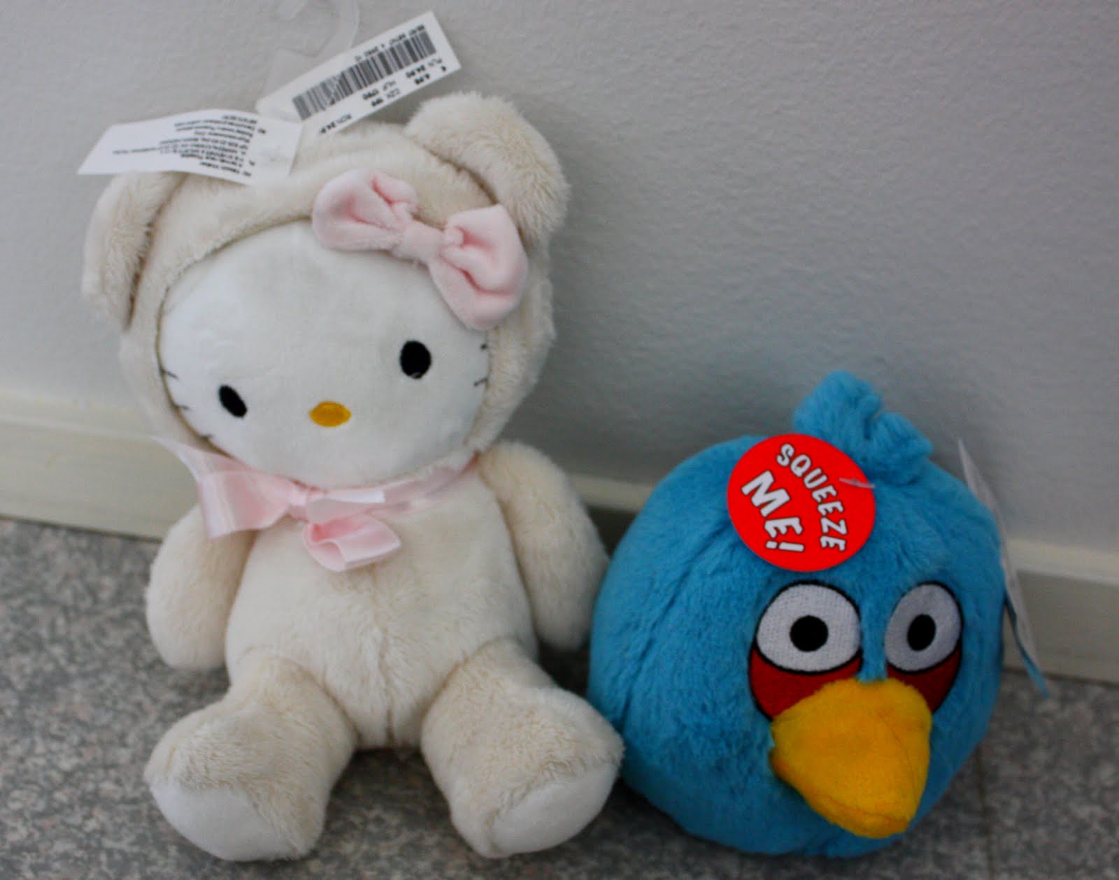 | Pikkumurulle Hello Kitty -pehmo H&M:ltä ja Angry Birds -pehmo Gamestopista 😀 |