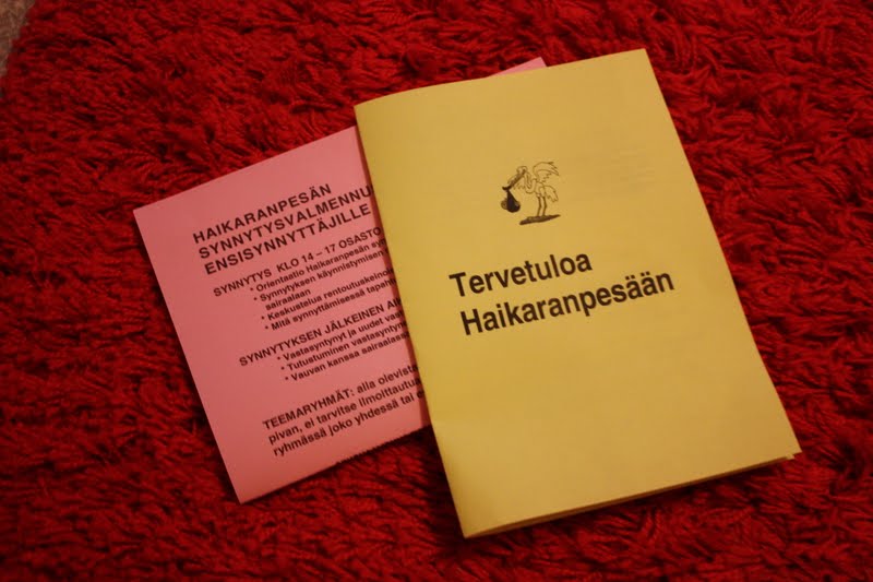 Tänään tipahti myös postiluukusta kerranki kaks kivaa kirjekuorta: Kelalta päätös äitiyspäivärahan myöntämisestä ja Haikaranpesän esitteet eli vielä kirjallinen varmistus siitä et pääsen sinne synnyttämään, JEE!