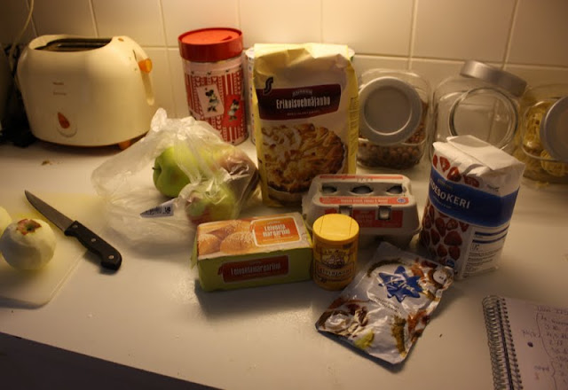 Tänään oon käyttäny koko päivän ruuan miettimiseen. Aamulla ku heräsin aloin suunnitteleen meille ruokalistaa seuraavien päivien ajalle ja sit innostuin ettimään uusia reseptejä netistä. Löysin aivan ihania ruokaohjeita ja lisäks keksin viel et tänään leivotaan omenapiirakkaa. Ruoka onnistu ihan täydellisesti mut toi leipominen ei vaan edelleenkään luonnistu multa, varmaan sekin vaikuttaa et meil ei oo sähkövatkainta ja on aika hankala koittaa tehdä kuohkeaa muna-sokeri -vaahtoa ilman sitä. Mut maku oli maailman paras koostumuksesta huolimatta ja se on tärkeintä!
