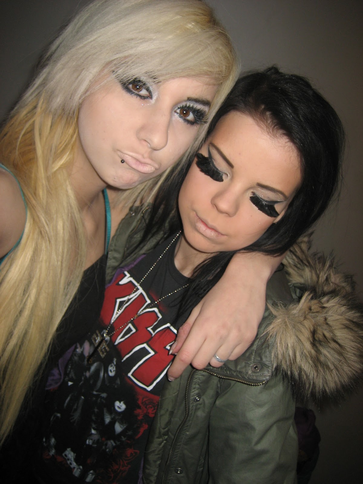 Hahah, tää on otettu joululomalla 09-10 ku olin just muuttanu mun ensimmäiseen omaan kämppään.. Ilmeisesti päätettiin vähän Deryan kaa meikkailla ja mä oon kiinnittäny noi ”ihanat” höyhen-tekoripset silmiin kaiken kukkuraksi :DD Ostin noi alunperin Lady GaGan keikkaa varten jonne en sit koskaan menny ku myin sen mun lipun pois. Piti sit ilmeisesti keksii noille ripsille muuta käyttöö 😀 Missäköhän noi ripset on nykyää, varmaa Mörkö on syöny ne tai jotain :D…
