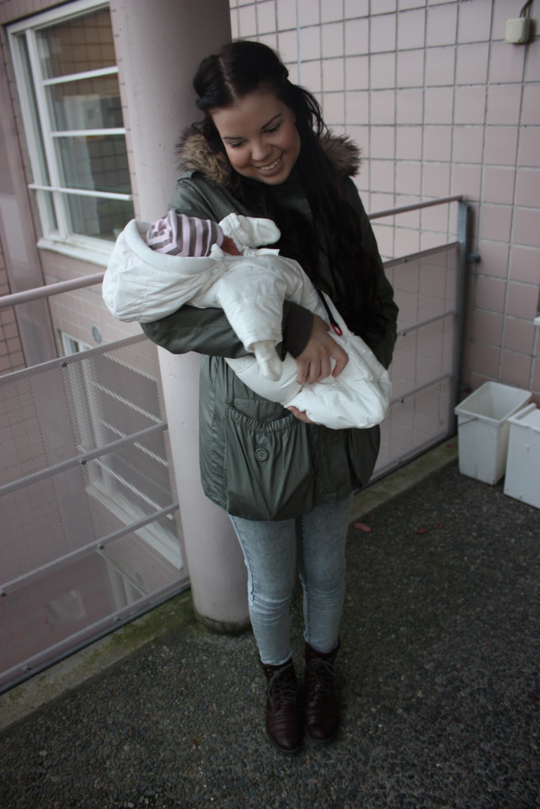 voi että ku oot onnellisen näkönen näissä kuvissa:) ja tuo vauva on NIIN PIENI! ^^ aww.