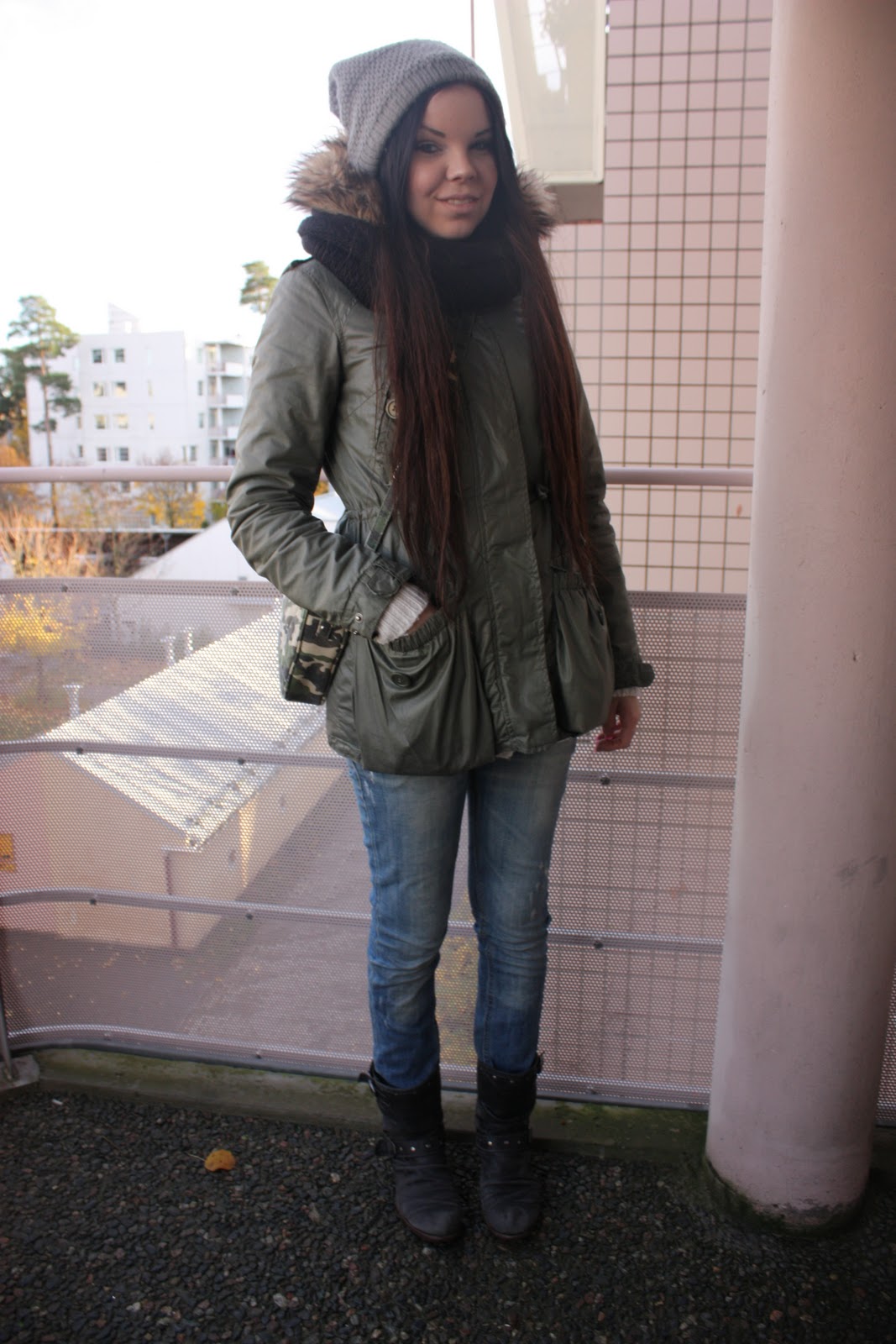 ihania kuvia ja ihana vauveli. 🙂 toi vihree takki sopii sulle aivan älyttömän hyvin, tuli itellekki sellanen fiilis et jos menis jostai metsästämää jonku ton tapasen.. 😀