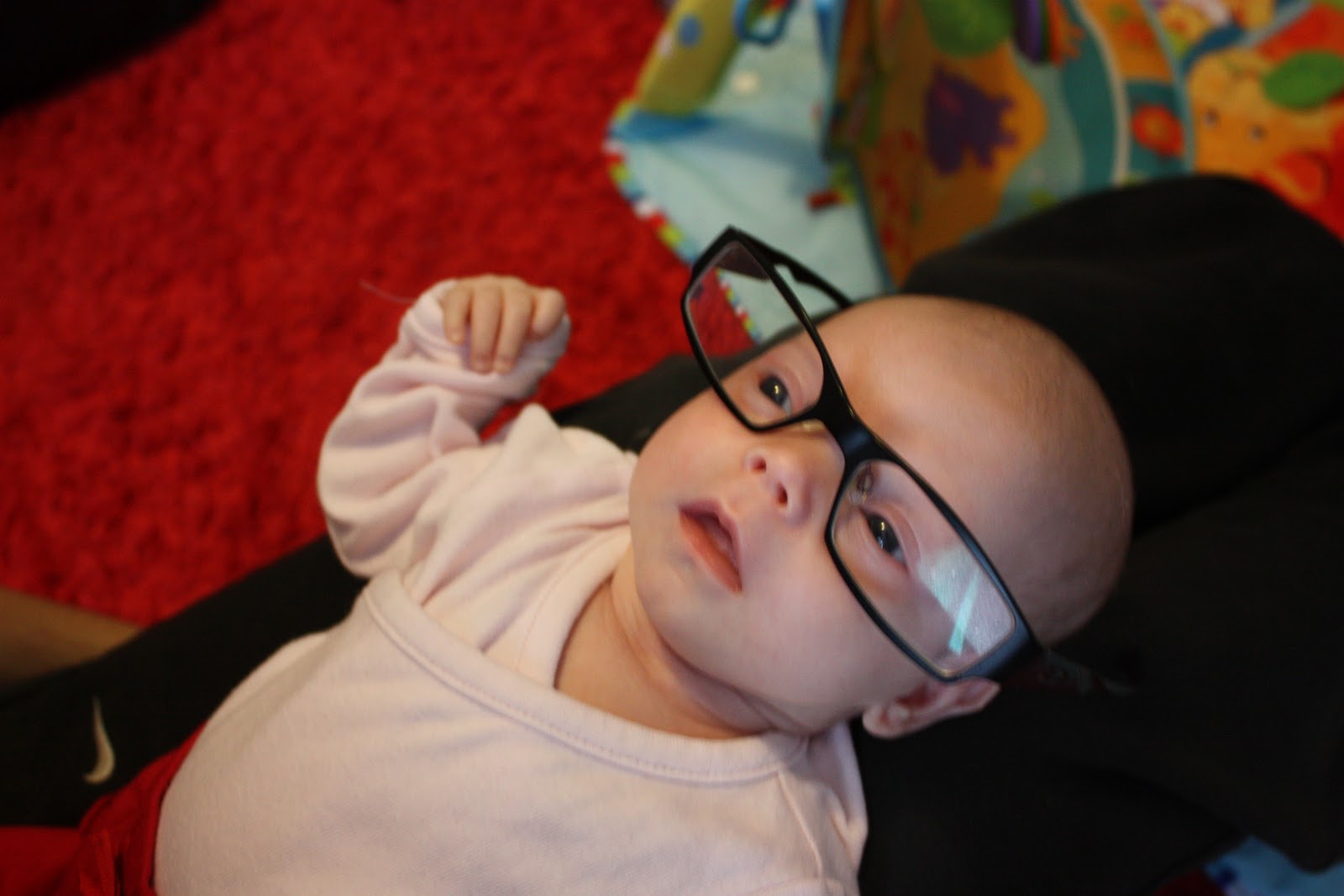 Ollaan syöty ihan liikaa ja leikitty ton ihanan pikku murusen kanssa. Leikkimattoa kokeiltiin tänään uudemman kerran ja ne roikkuvat lelut ei vielä innosta yhtään mut toi musiikki- ja valopaneeli on vissiin jo ihan mielenkiintonen. Ainakin toi neiti sitä tapitti innossaan vaikka kuinka kauan. Käytiin me ruuan ja leikkien jälkeen sentää ärrällä hakemassa limuu ja dippikastiketta, siinä oli ihan tarpeeksi tekemistä tälle sunnuntaille. Tässä on vähän kuvamateriaalia meidän sunnuntaihetkistä: