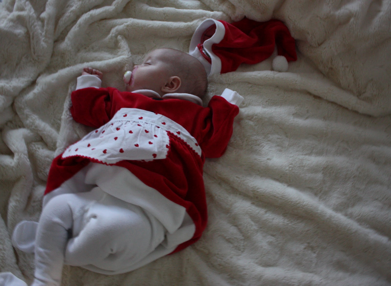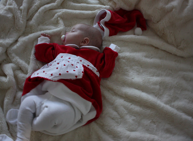 Otettiin tänään kuvia joulukortteja varten neidistä. Meidän ihana pikkutonttu jolla on kyllä niin hyviä ilmeitä, saadaan kyl mahtavat joulukortit aikaseksi! Lopuksi neiti nukahti, uninen pikkutonttulivauva. Kai sitä nyt nukuttaa kun oli niin ihanan pehmeä peitto alla, ostin ton eilen kun käytiin Itäkeskuksessa kun oon jo kauan himoinnut tollasta vaaleaa tekoturkistorkkupeitettä. Toi oli ihan täydellinen!