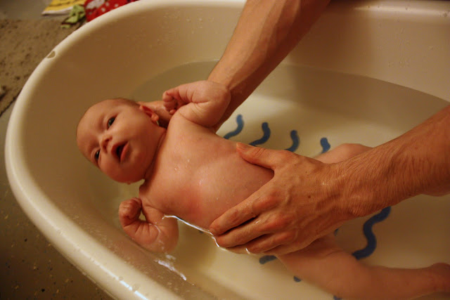 Onpa taas muuten jännä kun me ei nähtävästi osata Oton kanssa näitä pesuhommia anonyymien mielestä ollenkaan. Vauvaa kun pestään liian usein ja pupua ei herranjumala pesty ollenkaan! Mä siis tosiaan olen sekä lukenut erilaisista vauvanhoito-oppaista, sekä varmistanut neuvolasta että jokailtainen kylpyrutiini on täysin ok jos vauvan iho sen kestää. Ja meidän neidillä ei kyllä oo kertaakaan ollu kuiva iho tai mitään muitakaan ongelmia. Kylpy kuuluu meidän iltapuuhiin kuten iltamaitokin ja yökkärin pukeminen ja niistä neiti jo tietää et nyt ollaan menossa nukkumaan. Me ei myöskään läträtä millään pesuaineilla tai muilla vaan ihan pelkällä vedellä yleensä kylvetetään.