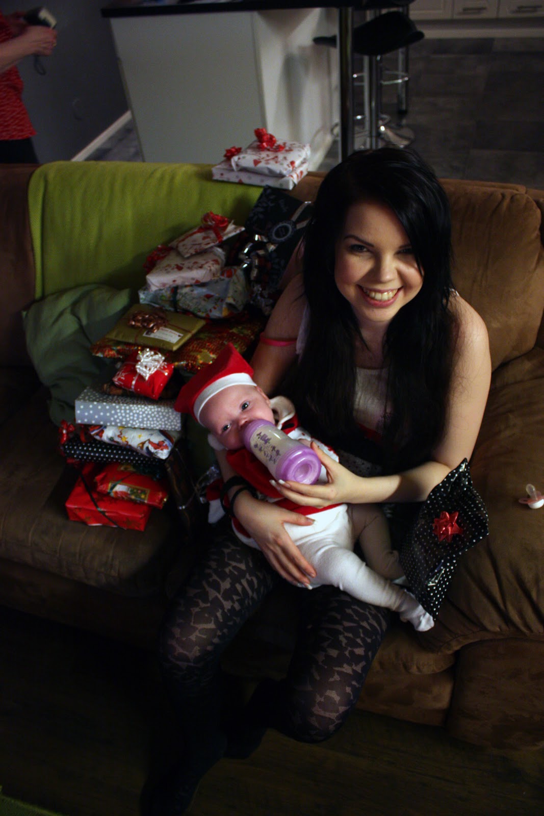 Olipas järkevä otsikko tai sit oon vaan ääliö. Selvisin aattoiltaan asti terveenä ja sitten iski flunssa joka on kokoajan ollu pahenemaan päin ja nyt on ihan hirvee olo, huomenna on aamulla Tirriskän 3kk-neuvola nii aattelin samalla kysästä lääkäriaikaa itselleni. Mut eipäs mennä asioiden edelle, tää on nimittäin minun Matti Myöhäsen joulupostaus, toivottavasti joululöpinää mahtuu vielä pikkusen eikä tuu jo aivan korvista ulos. Huomenna on sitten luvassa normipostausta, oon niin väsyny ja kipee että nyt laitan teille vaan täyslaidallisen joulukuvia selityksineen ja huomenna sitten toivottavasti paremmassa olotilassa kirjottelen pidempää stooria.