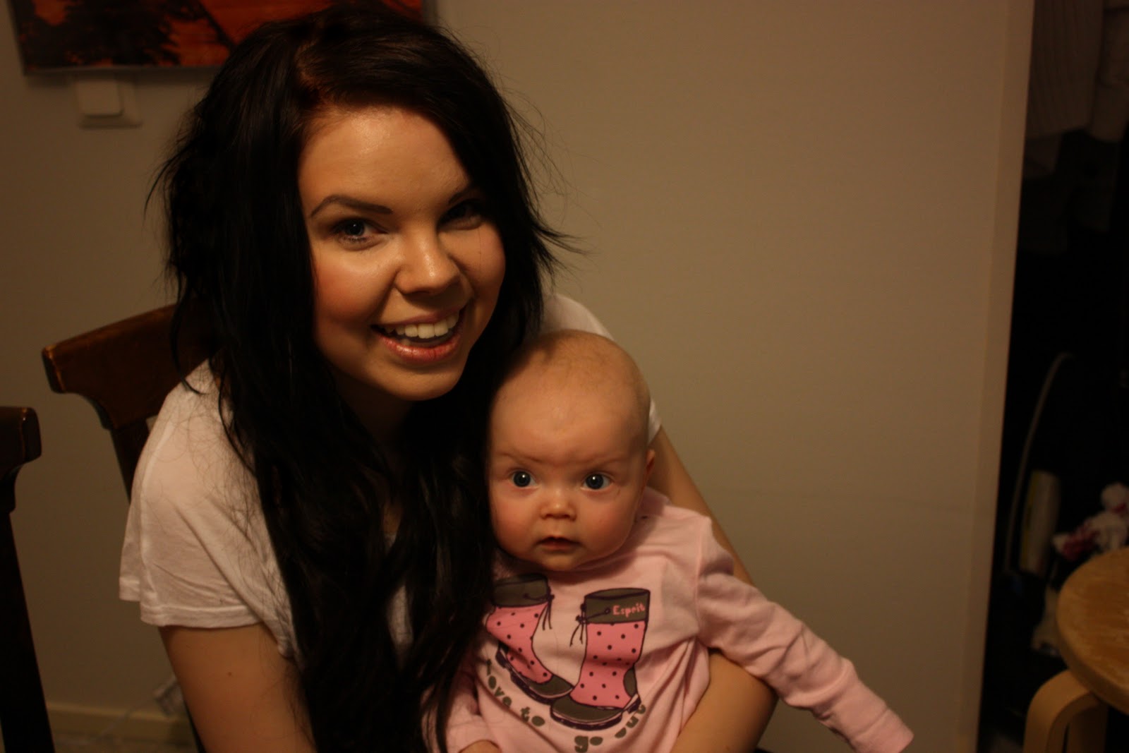 kivat silmäpussit sul 😀 ja on pitäny kysyy jo pitkään et onks Tiaral vaan toi yks tutti ku ei muita sen tutteja oo kuvissa ikinä näkyny :oaika epähygieenist ku tutit pitäis vaihtaa kuukauden välei :s tai no ei kyl sit jos ette nii usein tuttei käytä, joka päivä siis jos ette käytä. ei millää pahal kuitenkaa.oot ältsin kaunis ja Tiára on tosi söpö!