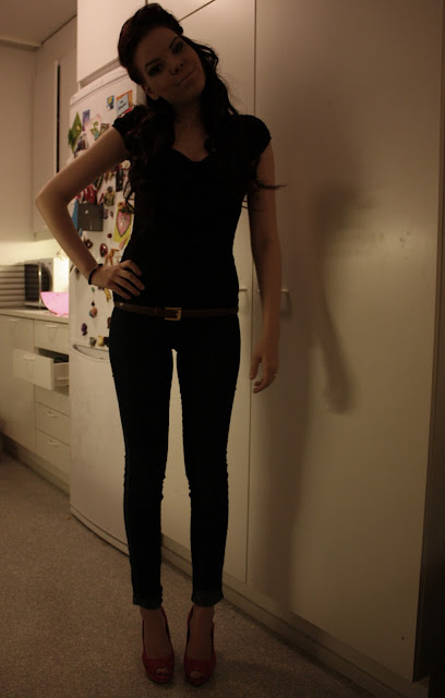 Eilen oltiin ihan vaan kotosalla vaikka illalla kyllä kipastiin kaupassa. Jaksoin pitkästä aikaa laittautua (kyllä, mä edelleen tykkään laittautua ihan vaan vaikka kauppaankin koska laittautuminen tuo luksusta mun arkeen) ja otin sitten vähän asukuviakin onnellisena siitä että Ginan xxs -kokoiset farkkuleggingsit jotka ei synnytyksen jälkeen noussu edes puoleen reiteen kun oli niin tiukat ei puristanu enää yhtään ja oli taas hyvin istuvat!