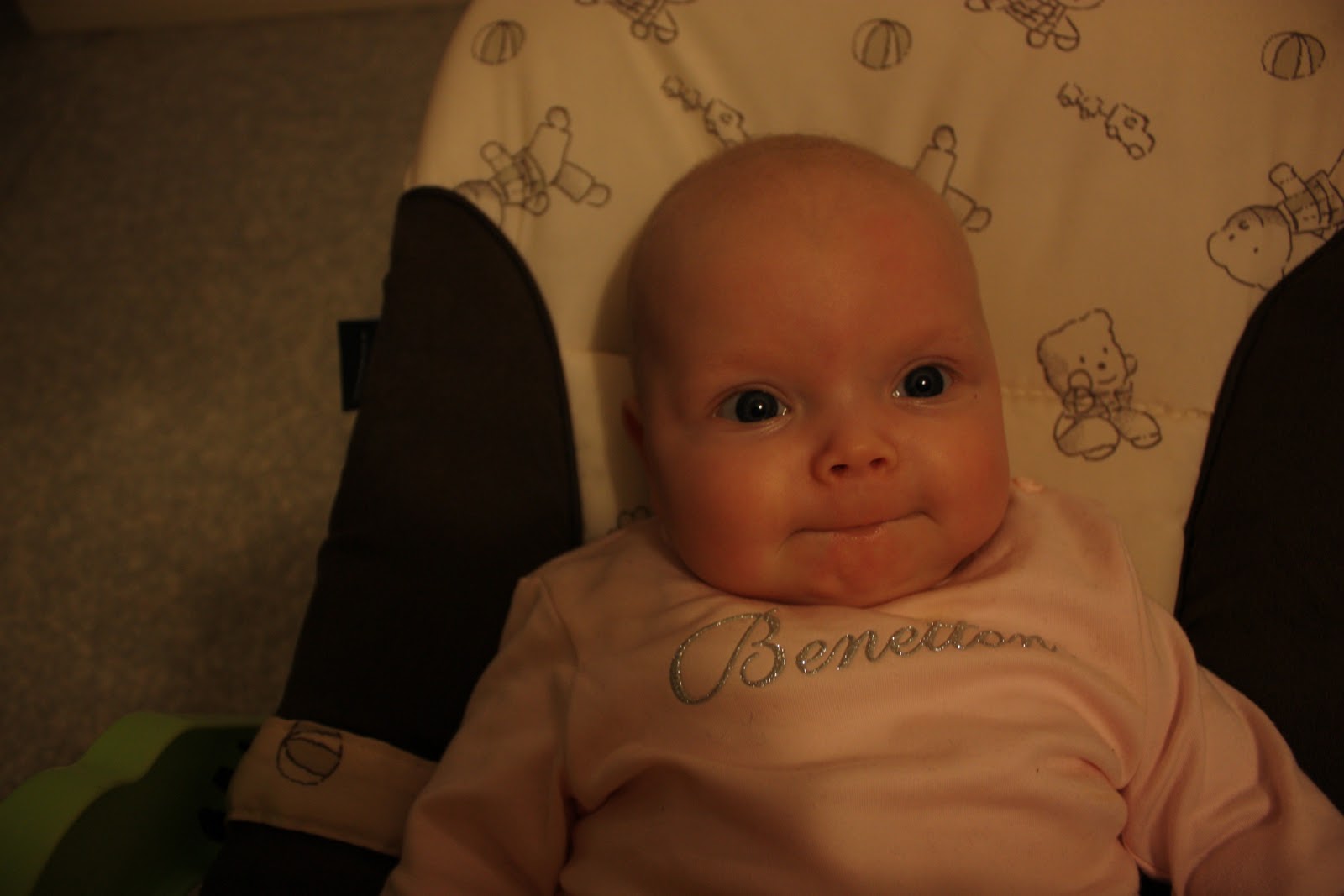 Onneksi neiti on tänään ollut oma ihana aurinkoinen itsensä niin on äidilläkin ollu helppo päivä. Se on muuten oppinut uuden lempiharrastuksen: alahuulen imemisen, mä en tiedä mikä siinä on niin kivaa mutta se mussuttaa omaa alahuultaan ja hihkuu onnesta? Ei tarvi tuttia eikä nyrkkejä kun apu löytyy vielä lähempää, omasta nassusta. Ja tätä tapahtuu siis ihan kokoajan ja pitkiä aikoja putkeen! Tässä pari kuvaa todisteeksi: