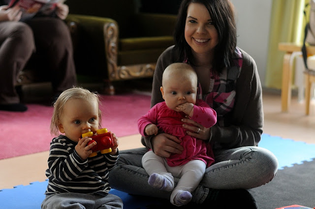 Käytiin eilen ensimmäistä kertaa Tiaran kanssa tuolla meidän läheisessä perhetalossa ja voi että mua oikeestaan naurattaa se että miksen oo mennyt sinne aiemmin! Siis kuinka kivaa siellä olikaan, Tiara ei vierastanut ollenkaan ja saipa hän ensimmäisen oikean pusunkin kun blogikollegani Saran ihana Elias -poika konttasi neidin luo ja pussasi mojovan muiskauksen. Tiara kihersi innosta ja jutteli ja leikki ihan innoissaan monta tuntia. Musta tuntuu että aletaan vierailemaan tuolla kyllä hieman useammin kuin kerran viidessä kuukaudessa, paikka on nimittäin jokapäivä auki ja tunnelma oli todella rento. Sai tehdä mitä itse halusi eikä ollut mitään pakollista ohjelmaa, kukaan ei tuputtanut mitään mutta jos halusi niin sai osallistua myös ryhmätoimintaan. Ja saipa sieltä hyvää pullaakin!