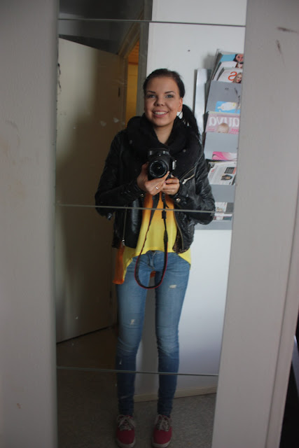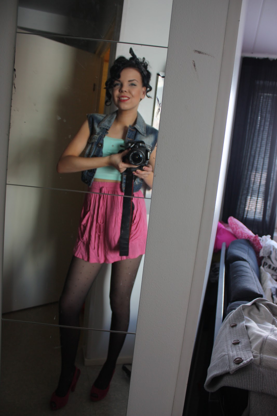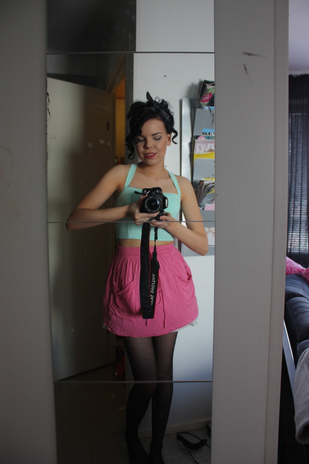 Mä eilen ”vähän” innostuin Tirriäisen päikkäriaikaan ja taiteilin itselleni sitten sotkuisen kiharapläjäyksen tukkaani. Musta siitä tuli ihan kiva mut kyllä siinä omia lyhkäsiä haivenia kiharrellessa tuli taas ikävä pidennyksiä. Mut mä aion pysyä vahvana ja olla sortumatta vaikka mulla oliskin teippiä ja hiuksia tuolla, haluun saada omat hiukset hyvään kuntoon ja kasvattaa pitkiksi ja pidennykset ei auta siinä projektissa ollenkaan. Heittäydyin jopa niin villiksi että laitoin punasta huulipunaa ja tykkäsin kyllä, mun mielestä se näytti kivan raikkaalta vaikken yleensä kauheesti huulia meikkaakkaan. Sovittelin vähän vaatteita kun en osannu millään päättää mitä laitan päälle shoppailureissulle, lopulta päädyin kyllä ihan eri vaatteisiin mutta mun mielestä noikin näytti ihan kivalta kun nyt kuvista kattoo, ainakin oli värikästä päällä. Mitäs tykkäätte?