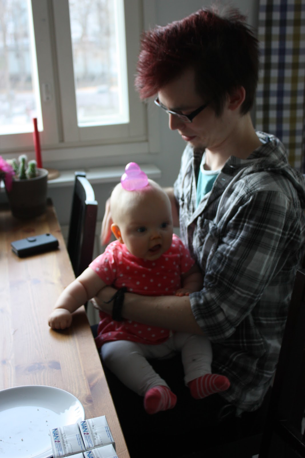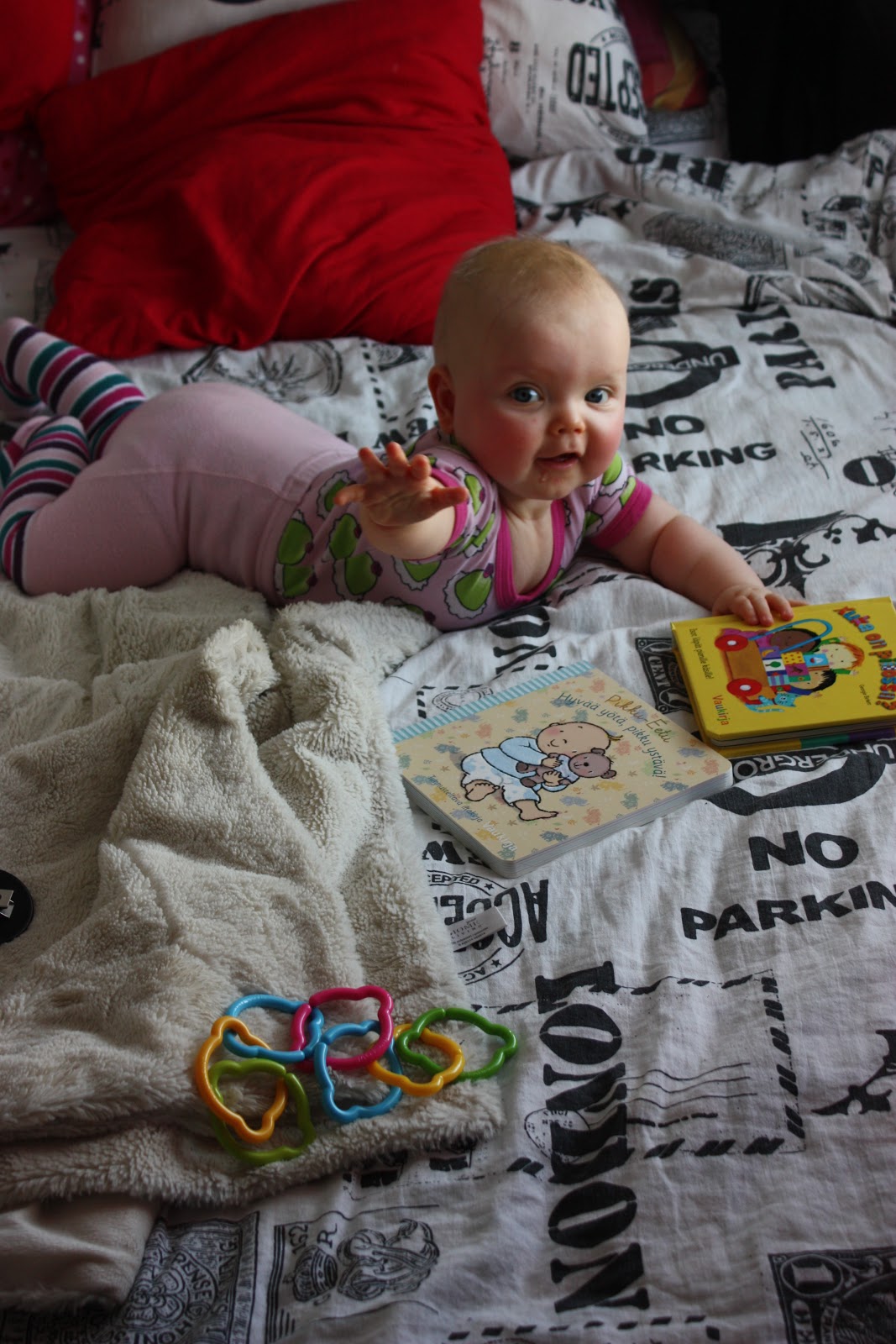 Otsikko on rakkaan tyttäreni keksimä, aika hieno vai mitä?! Yleisin ääni mikä Tiaralta tulee nykyään on ”aijaijaaijaiijaiii”, sattuukohan sitä johonkin.. Iloiselta se tosin aina kuulostaa tota hokiessaan ja säestää noita ääniä aina pienillä välipäristelyillä. Ihana! Muita suosittuja äännähdyksiä on mm. ”babbaabbaabbaaa” ”tätätättäätäättäää” ja ”hauuuuuuhuuuhauuu”. Niin ihanaa kun Tiara on alkanu metelöimään enemmänkin ja kujerrusten ja kiljahdusten seuraksi on tullut ihan oikeita tavuäänteitäkin. Huomenna meillä on vihdoin luvassa se neuvola niin saa taas sitten tietää vähän mittojakin ja jutella neuvolantädin kanssa. Mä tykkään kauheesti käydä neuvolassa vaikka se ei ookaan niin ihmeellistä, mut jotenki se on vaan niin kivaa. Muita neuvolatykkääjiä?