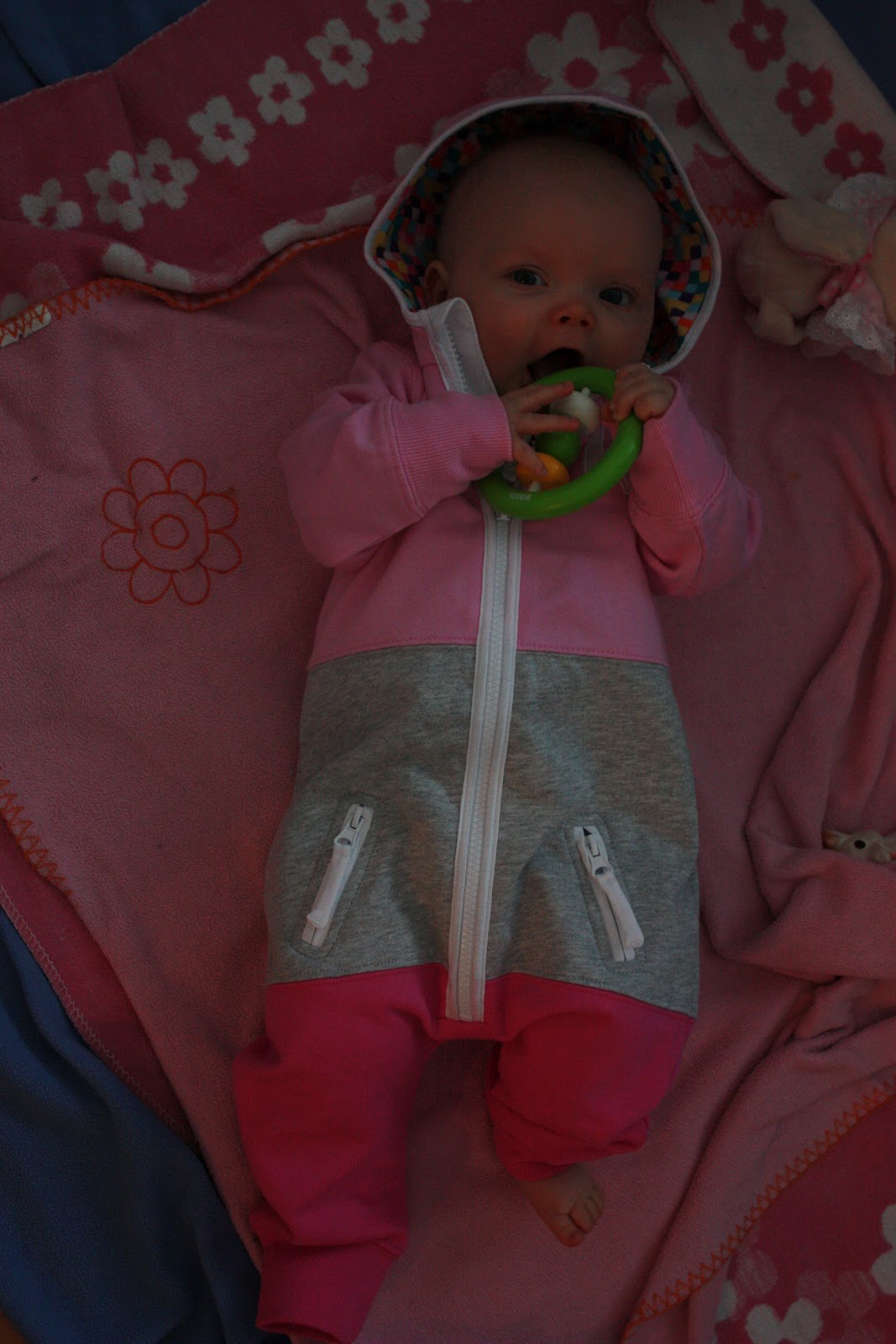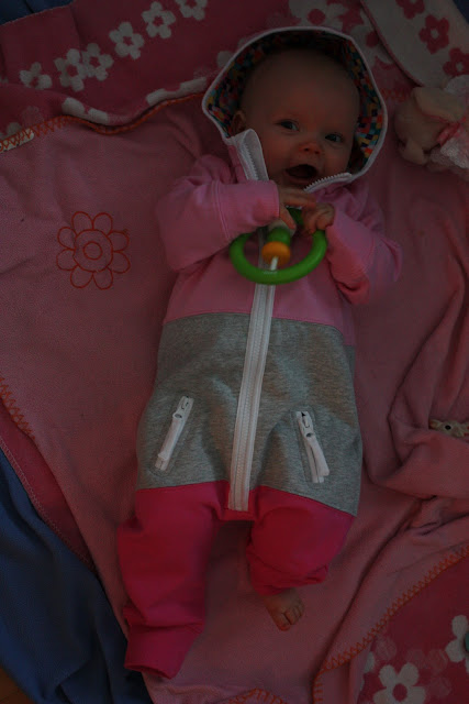 Tyytyväinen uuden haalarin omistaja! Tiara näytti kyllä viihtyvän haalarissaan vaikka lahkeet onkin hieman pitkähköt vielä. Toi oli kans junassa kätevä kun se on niin mukava ja lämmin, kun siellä meinas olla vähän viileää.