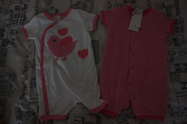 Mitäs tykkäätte ostoksista? Mä oon ihan rakastunut noihin kaikkiin ja voi että tulee niin kesäfiilis ku ees kattelee noita vaatteita. Voin kuvitella Tiaran konttaamassa nurmikolla shortsihaalarissa ja sit sillä on ihan vihreet polvet tai jotain :D… Siinä oli meidän ostokset, pakko sanoa että kyllä vielä silti shoppailuttaa vaikka tulikin ostosteltua jo aika paljon. Mutta kyllähän sitä ehtii!