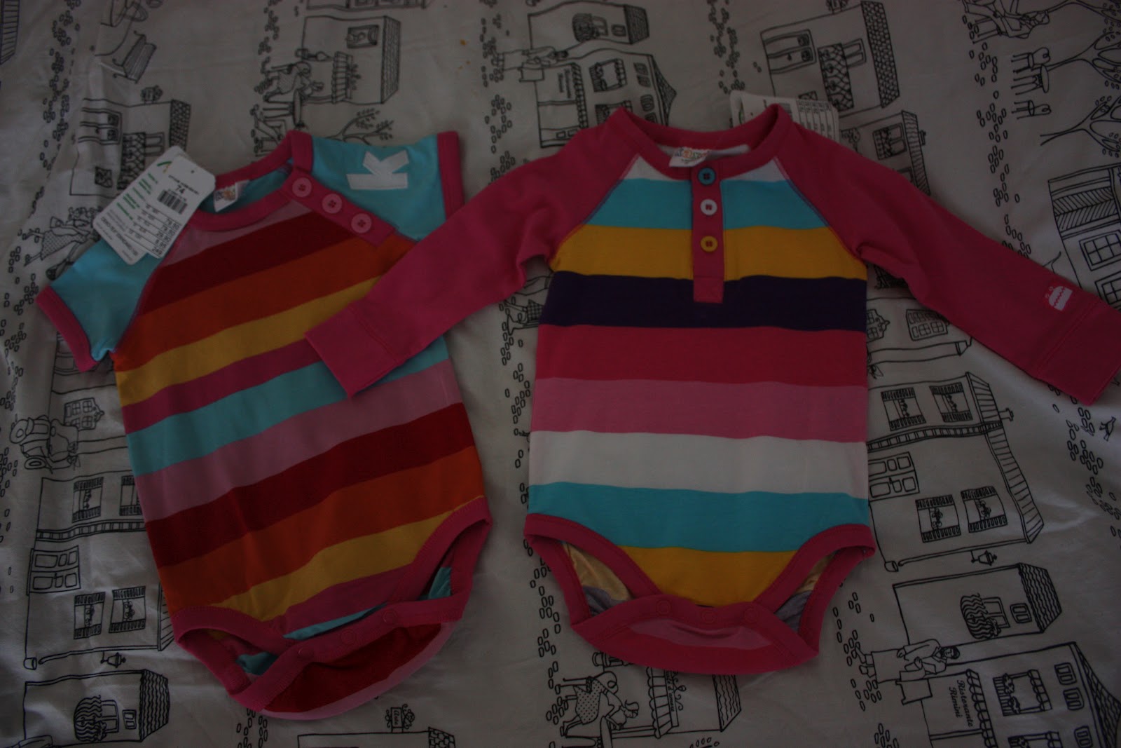 No mä oon vähän samaa mieltä, on ne aikuisillekin kotioloihin varmasti tosi mukavat, mut en mä noiden kanssa ulos lähtis niinkun en lähtis verkkareissakaan 😀 Vauvoille noi sopii hyvin pidettäväksi missä vaan 🙂