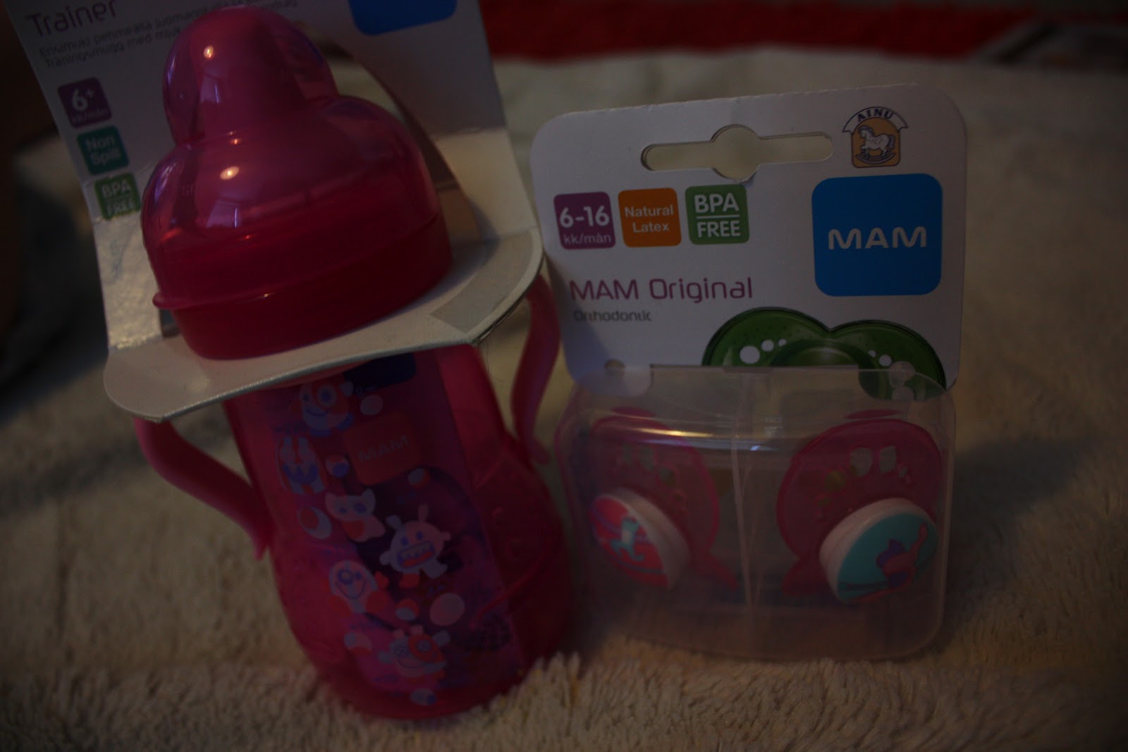 Ja sitten vielä ensimmäinen nokkamuki ja tommoset supersöpöset karusellihevos -tutit. Noikin on aivan ihanan värisiä! En millään meinannu löytää uusia kivoja tutteja Tiaralle ku tuntuu jotenkin et noi 6kk+ tutit ei oo yhtään niin söpöjä kun ne pienemmille tarkotetut, mut noihin onneksi tykästyin.
