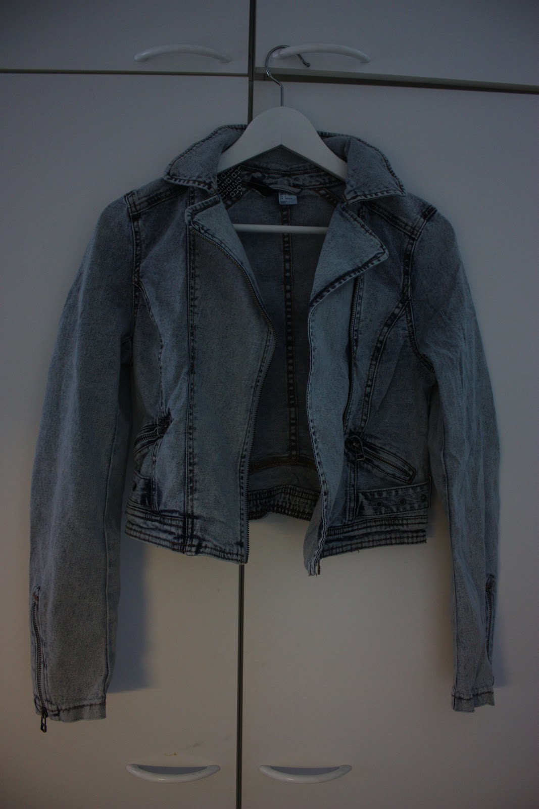 Biker -farkkutakki H&M:ltä, toi on niin kiva! Mulla on kyllä jo yks tollanen mut se on lyhyempi ja siinä on lyhyemmät hihat niin sille ei oo oikeen ollu mitään järkevää käyttöfunktiota koska se on helteellä liian kuuma ja muuten liian kylmä. Mut onneksi on nyt tää parempi versio!