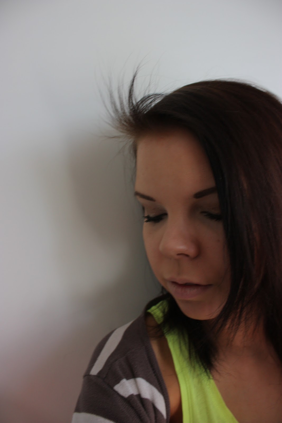 Toi töyhtö! Se raivostuttaa mua ihan suunnattoman paljon, miksi mun muuten ihan kivoissa hiuksissa pitää olla tollanen rasittava töyhtö. Miksi noi vauvahiukset kasvaa ylöspäin aina eikä voi roikkua alaspäin niinkun kaikki muutkin? Miksi, oi miksi? Ja siis en ole noita leikannut, tollasiksi enkä koskaan ole edestä leikannut noin lyhyeksi, noi on vaan uutta hiusta joka kasvaa mutta voi hitto että ottaa päähän. Olenko mä ainoa otsatöyhdön omistava vai onko mulla kenties kohtalontovereita? Joka aamu saa tuon taltuttamiseen kulumaan kyllä monta minuuttia, jos se onnistuu silloinkaan. Näytänpäs muuten sopivan masentuneelta noissa kuvissa (:D)! Ei tää nyt tietenkään niin kauhean vakava asia ole, mutta ois kiva kun noille ois joku keino millä ne sais yhtä suoraksi kuin kaikki muutkin hiukset!