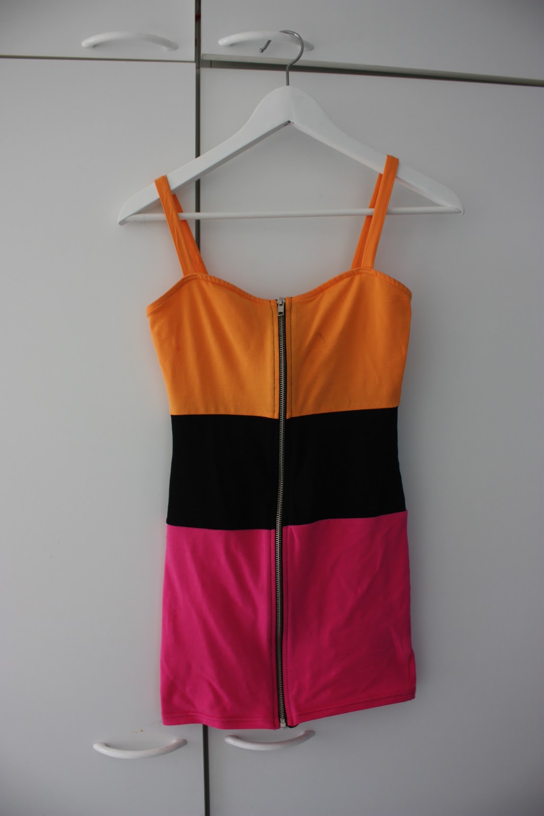 Oranssi-musta-pinkki vetskarimekko MULLE, H&M. No pitihän sitä äidillekin napata jotain pientä ja löysin sitten ihanan trikoomekon mun tän kesän suosikkiväreissä! Mulla alkaakin olla yllättävän paljon kaikkea oranssia (ja pinkkiä) kaapissa, mitä en ikinä ois voinut kuvitella vielä vuosi-pari taaksepäin, mutta mikäs siinä, värit on ihania ja niistä lisää toivepostausviikolla vaatekaapin esittelypostauksessa!