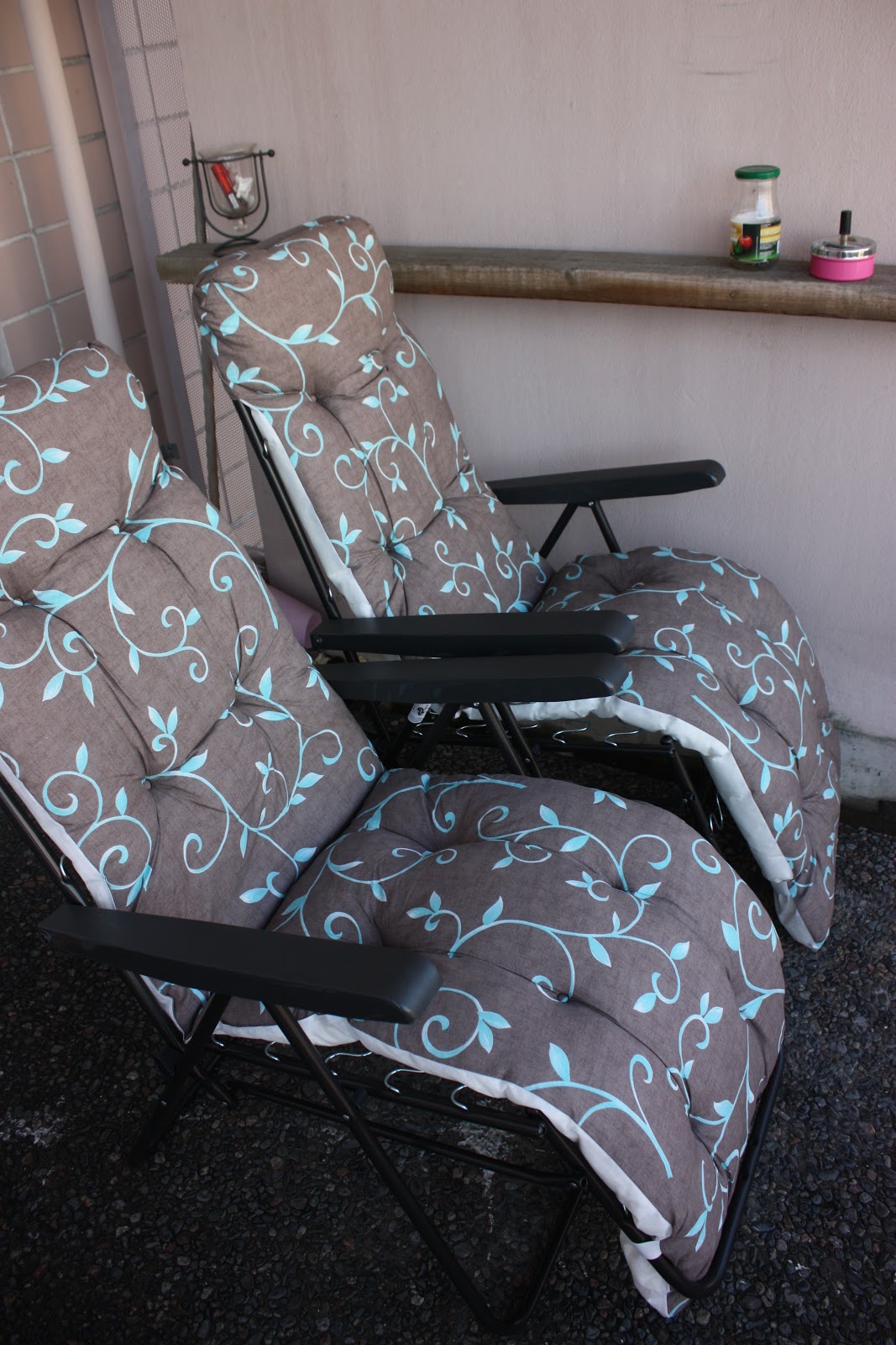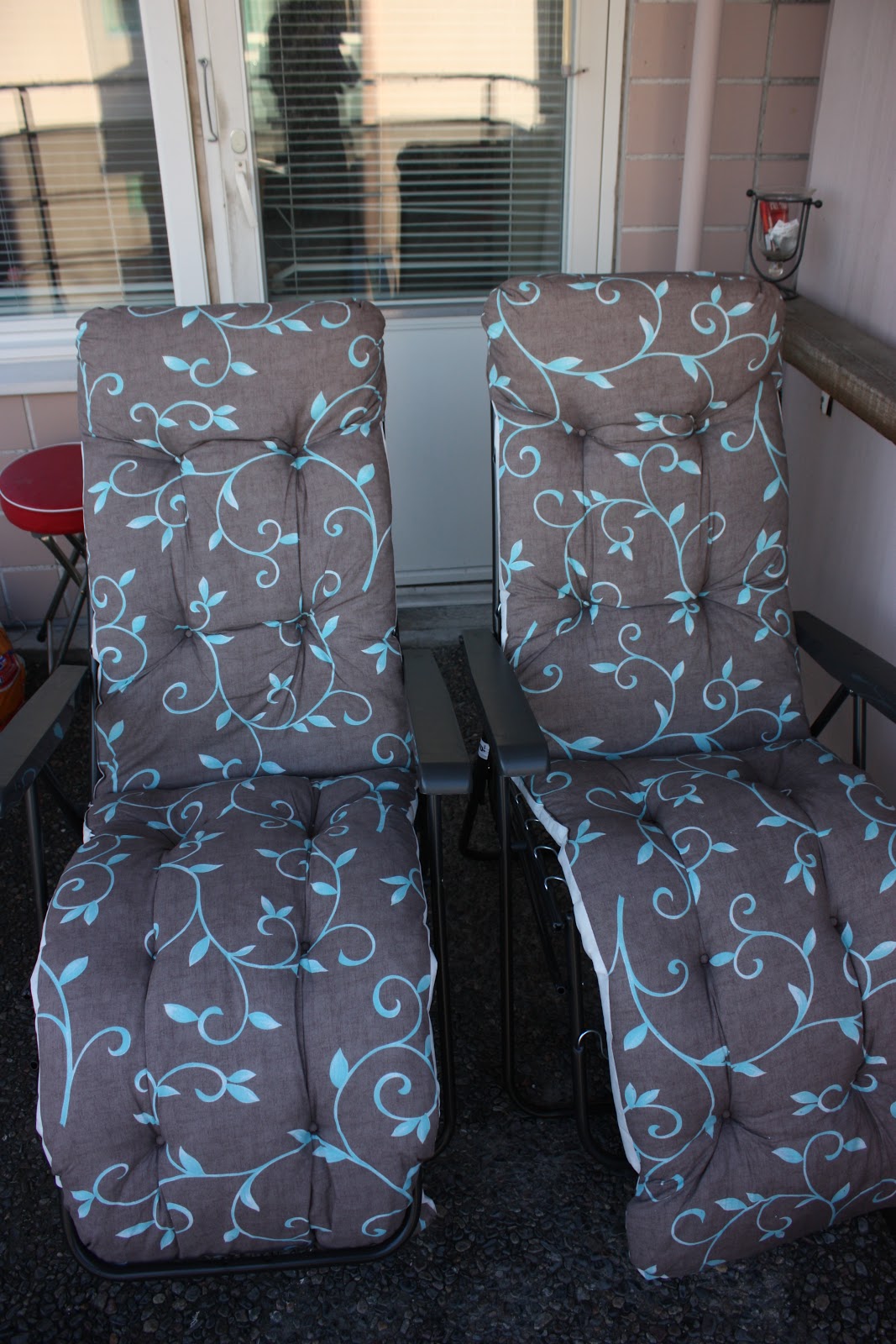 Badenbaden -tuolit Tarjoustalosta, noi on siis varmaan ekat mun mielestä ihan ok -näköiset badenbadenit joissa ei oo jotku hirveet oranssi-sinipinkki-kelta-vihree-violetit ällötyspäälliset valkosessa rungossa. Faktahan on se et noi on ihan mielettömän mukavat tuolit ja noissa on maailman parasta ottaa aurinkoa, testattu on! Mutta sitä en vaan voi käsittää että miksei noihin voi tehdä yksivärisiä päällisiä, eikös yksiväriset kankaatkin ois halvempia kun kuvioidut? Mene ja tiedä, mutta tyydyn näihin meidän versioihin nyt oikein mielelläni.