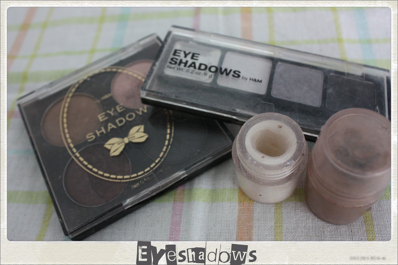 Tässä on mun ”arki” -luomivärit, kaikki taattua H&M -laatua! Mä en muuten kauheesti ostele mitään ihan halpameikkejä mutta noi H&M:n luomivärit on hintalaatusuhteeltaan mun mielestä ihan täydellisiä! Niistä tulee hyvin pigmenttiä, ne ei maksa paljoa mitään ja niitä saa kaikissa kivoissa sävyissä.