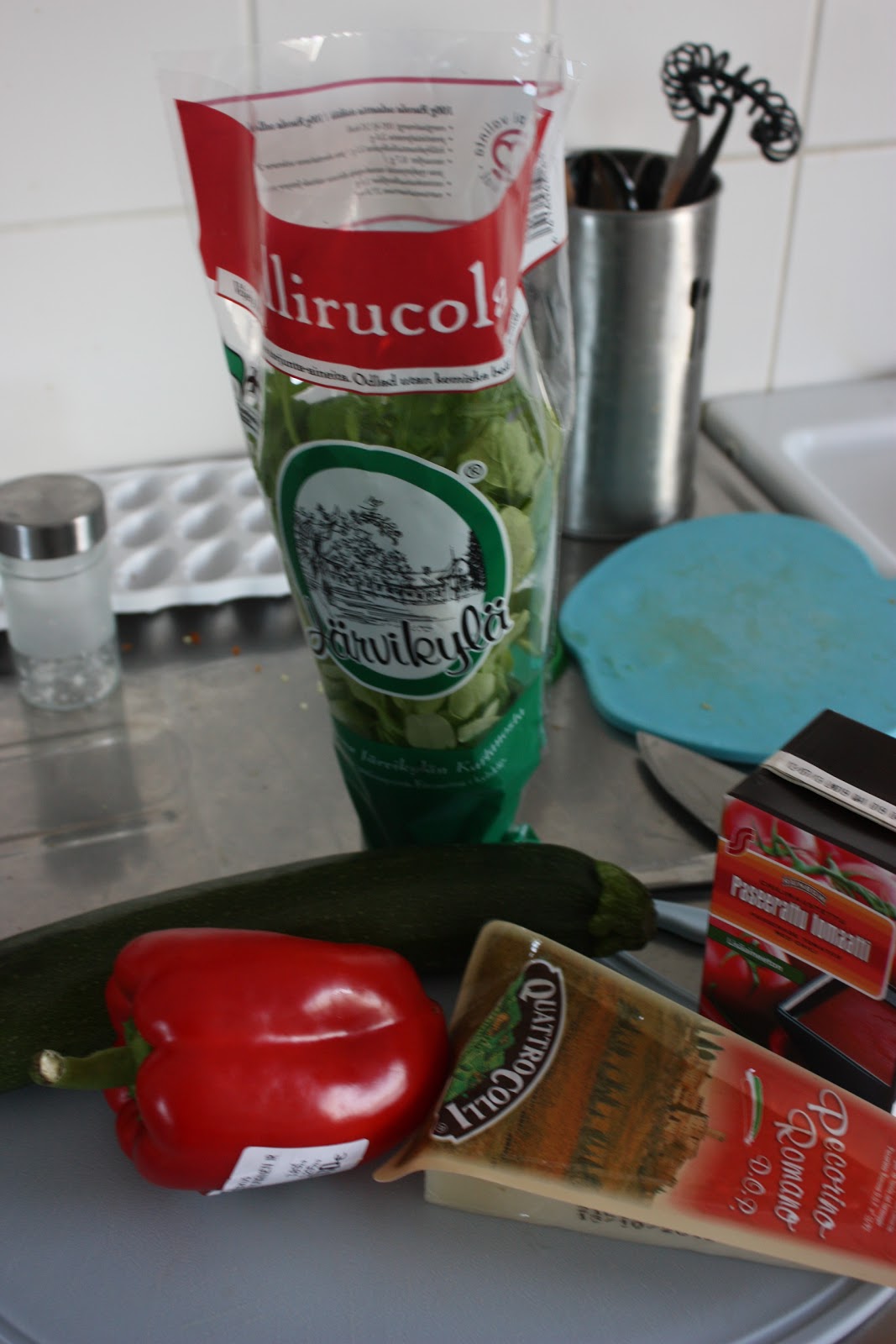 Oon tässä parin viikon ajan nyt kasannut semmosia reseptejä joita ei ennen oo täällä blogissa ollut ja nyt olis materiaalit ruokapostaus pt. kakkoseen valmiina! Näin kun kesä alkaa jo pikkuhiljaa olla täällä niin oon taas löytänyt mun kesäkurpitsainnostuksen ja siksi sitä on tungettuna aika moneen ruokaan. Mutta mikäs siinä, kesäkurpitsa on todella hyvää! Ja mä totean nyt jo tässä valmiiksi, että kyllä, meillä käytetään pahamaineisia marinoituja broilerinfileesuikaleita, koska mä (ja Ottokin) pidän niiden mausta. Tiara ei vielä toistaiseksi syö meidän kanssa samaa ruokaa, joten se on täysin mun oma henkilökohtainen häpeä mitä kakkaa mä mahalaukkuuni tungen.