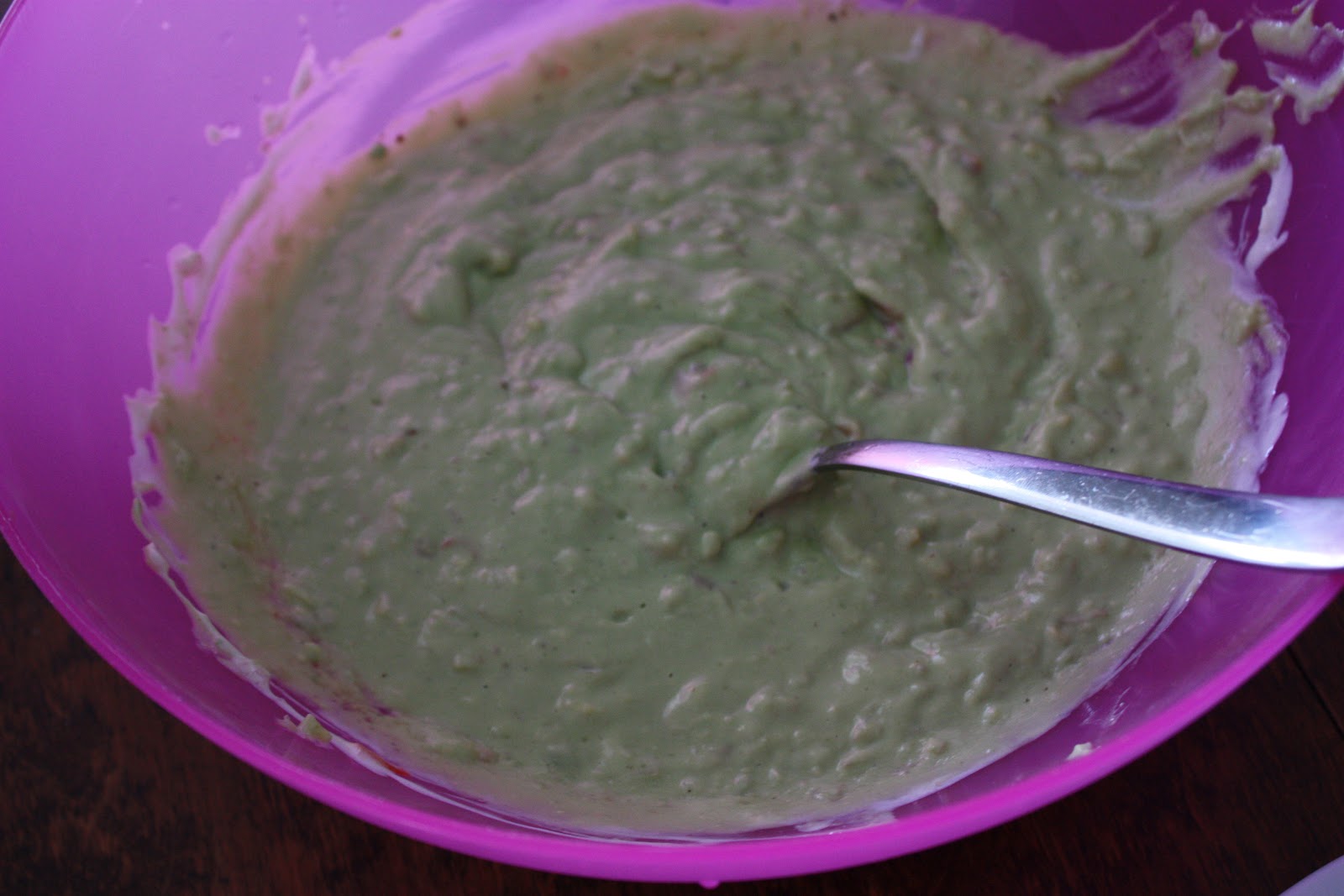 Poista avokadoista siemenet ja koverra hedelmäliha kulhoon. Mössää avokadot haarukalla ja sekoita kermaviilin joukkoon. Lisää sitruunamehu. Pilko tomaatit, chilit ja sipulit niin pieneksi silpuksi kuin vain saat ja lisää mössön joukkoon. Purista valkosipuli ja lisää mausteet. Sekoita hyvin ja avot!