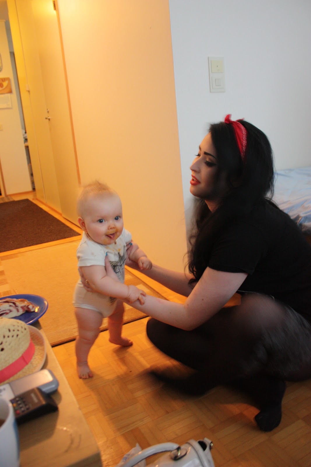 Räpsittiin neidin kanssa vielä yhteiskuviakin, on se vain niin ihana palleroinen! Tiara ei vaan oikein malttais enää hirveästi pysyä paikallaan kuvailujen ajan vaan kokoajan on pakko kontata jokapaikkaan tutkimaan. Mutta aina sitä saa onneksi muutaman heilahtamattomankin kuvan just ja just napattua.