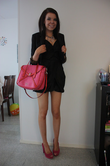 Mulla olis vielä erikseen kuvat mun ja pikkuneidin päivänasuista! Mä päädyin mustaan mekkoon (valitettavasti) siitä syystä, että ulkona oli niin karsea ilma ja sen maximekon helma olis kastunut tosi pahasti koska se oli korkkareidenkin kanssa maata laahaava ilman masua. Mutta onneksi toi musta mekkokin oli ihan kiva! Ja kuten noista ylemmistä kuvista huomaa, kyllä, mulla oli sukkahousut! Mutta mä tykkään ottaa asukuvat muuten ilman sukkahousuja koska mun mielestä kaikki asut näyttää aina kivemmalta ilman niitä. Eilen oli sääkin onneksi niin tumma ja ikävä että musta väri sopi siihen paremmin kuin hyvin!