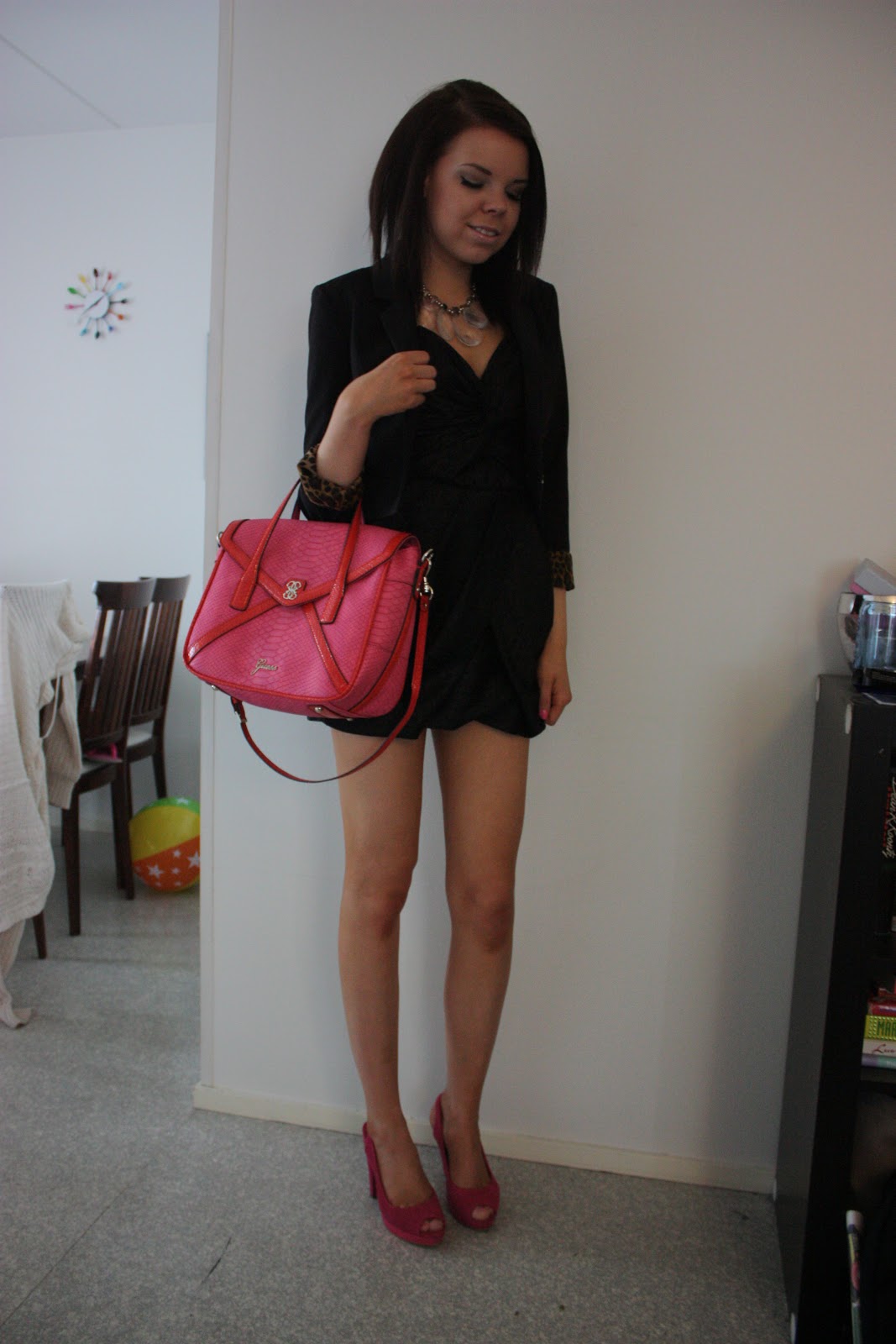 Aww miten suloinenn 🙂 Ihana asu ja tuo laukku tuo piristystä :)) Mulla oli eilen omat juhlat ja aamulla en saanut juhlapuvun vetoketjua kiinni joten piti laittaa toinen puku kirkkoon :(((