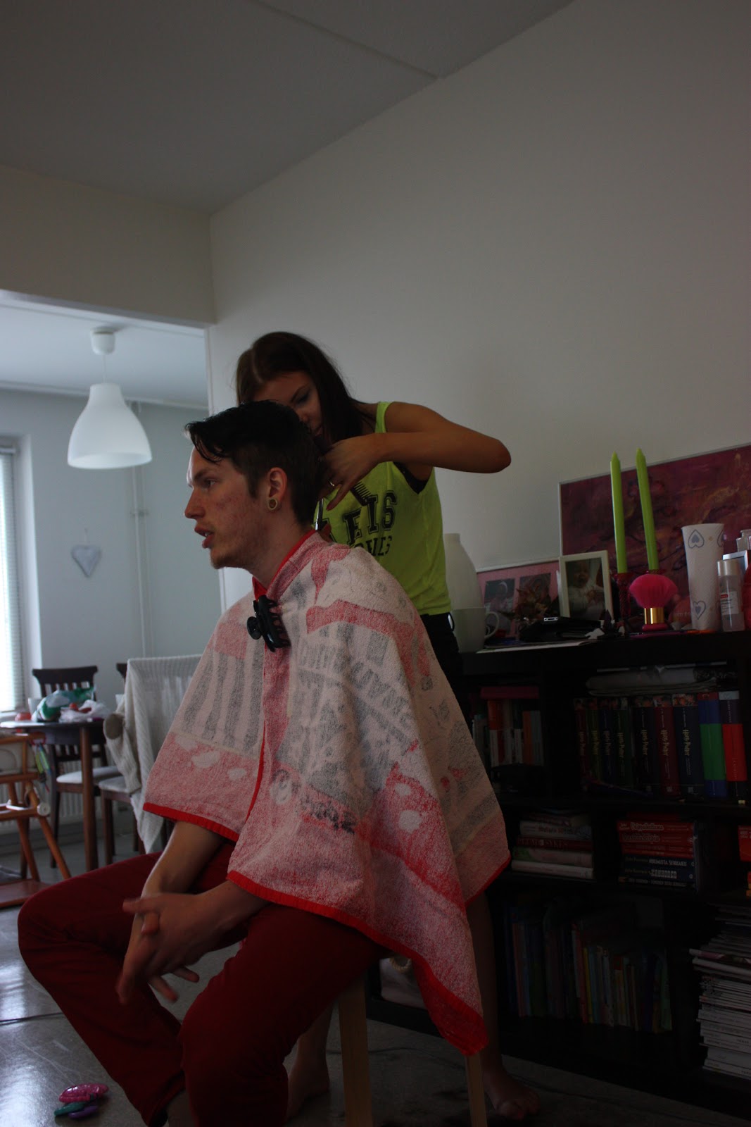| Simo ja Kaisla on parhaita ja ne tykkäsi lohikeitosta!<3 Ja Simon uus tukka ennen värjäystä ja muotoilua! |