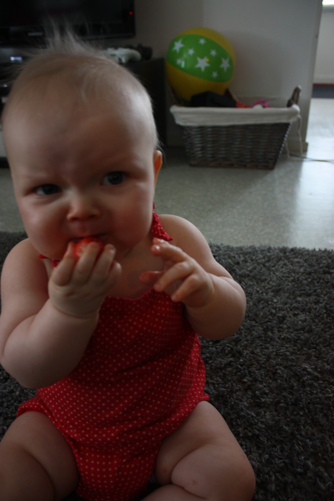 Ihania nyö mansikansyöntikuvat :’D voi että! Melkoisen ilmeikäs pikkuneiti teillä 🙂