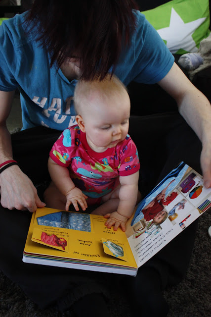 Missä on se äitin seiniä tuijotteleva maidon tuoksuinen pieni paketti, häh?! No tuolla se vipeltää vastaheränneenä (päikkäreiltä) menemään ja paiskoo kirjaa lattiaan. Virtaa riittää heti heräämisen jälkeen siihen asti että silmät väkisin painuu kiinni vaikka vielä vaan pitäis saada leikkiä! On se vain niin rakas ettei mitään järkeä. Huomenna meillä on vihdoin 8kk -neuvola ja neuvolalääkäri joten huomenna päivittelen sitten neuvolakuulumisia ja mittoja, sekä teen perinteisen kuukausipostauksen siitä mitä Tiara osaa, mistä tykkää jne. Nyt mä alan antamaan neidille lounasta jos vaikka sitten päästäisiin ulos nauttimaan ihanasta ilmasta. Mahtavaa alkanutta viikkoa kaikille<3