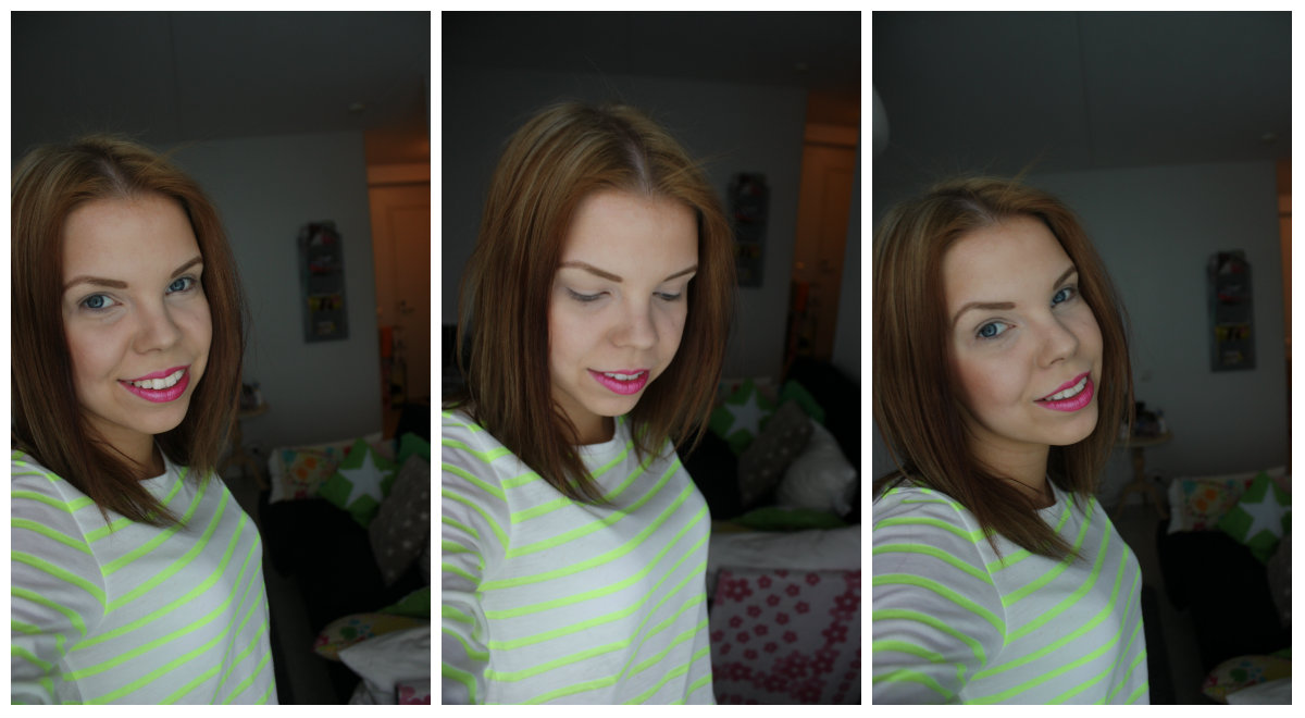 Mitäköhän ihmettä puuhaaan ensimmäisessä kuvassa? Miksi mulla ei ole kaulaa? Mikä on tokan kuvan käsien asento, kuka oikeasti pitää käsiä tolleen ja kuvittelee että se näyttää hyvältä? Minä näköjään. Ja kolmas kuva, mitä ihmettä mä huidon siinä ja silti oon noin jäykkä? Voi hyvää päivää oikeesti!