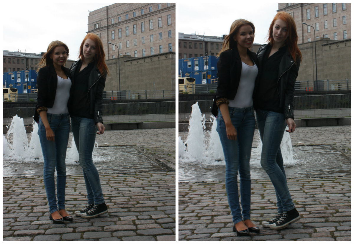 Kun lähdettiin moikkaamaan Ringoa niin Tiara nukahti vaunuihin varmaan sekunnin sadasosassa ja mun kaavailema puistohengailu Tiaran kanssa muuttuikin vanhojen aikojen muisteluksi vanhalla porukalla, tutussa vanhassa puistossa ja oli mukavaa vaikkei ilma kauheasti suosinutkaan. Tuli naurettua ja muistin monta vanhaa juttua jotka olin jo unohtanut. Vaikkei mulla olekaan enää hinkua elää sellaista elämää kuin ennen niin musta on silti ihana muistella kaikkia hauskoja kommelluksia kavereiden kesken ja kelata tapahtumia kaveruuden alusta nykypäivään asti. Ilman niitä kokemuksia mä en ois nyt tässä tälläisenä kuin olen joten mä oon kaikesta kokemastani kiitollinen. Huh menipäs syvälliseksi, nyt mulla olis sellanen idea että koska yleensä mun postauksissa on kauheesti jotain jäykkiä posekuvia, niin tänään mä jaankin teille ”normaalien” kuvien lisäksi ne kaikki pieleen menneet asu-otokset, enjoy!