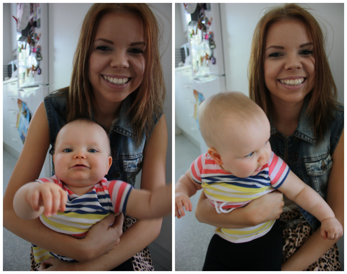 Iina tulee usein vastaan Vuosaaren päässä neidin kanssa, ja käydään koko perhe kaupassa. Tai no, Iina käy kaupassa, mä ”käyn kaupassa”. Toisinsanoen, Iinalla on ostoslista, ja kulkee tietäväisesti hyllyltä toiselle poimimassa kaiken tarpeellisen. Minä pysähdyn aina lähitietämille leikkimään neidin kanssa. Tulee aina snadi ikävä päivän mittaan. Piristää aina huomattavasti päivää ku perheen tytöt seisoo metron ulkopuolella odottomassa, kummallaki hymy korvissa asti. Tulee välillä semmonen olo et onko mun naamassa jotain outoa ku niin hymyillään, mut kai niistä on oikeesti kiva nähdä mua, tiedä häntä.
