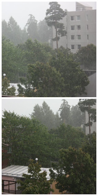 Sää ei oikein houkuttanut ulkoilemaan, vaikka salaa mielessäni haaveilin keltaisista Rukan kurahousuista ja maailman isoimmasta lätäköstä johon saisin mun pinkeillä hai-saappailla mennä läiskyttelemään ja pyydystää sadepisaroita kielellä. Se vaan oli maailman parasta pienenä!