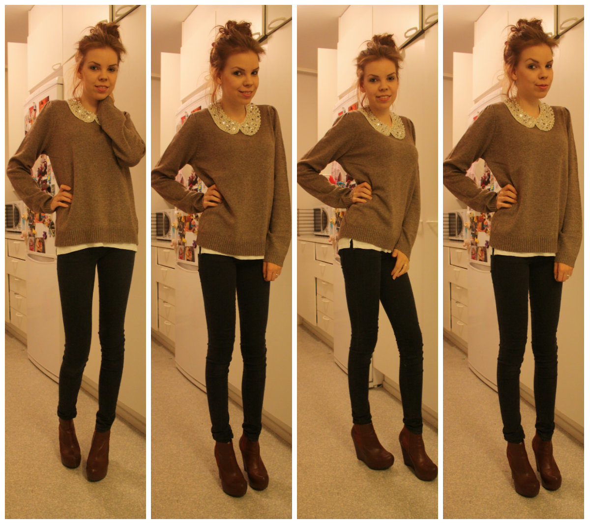 Tää kaulus-kaulakoru on ehkä suloisin asuste mitä oon koskaan nähnyt ja se kyllä virkistää virttyneemmänkin villapaidan ihan uudennäköiseksi! Mä oon enemmän kuin tyytyväinen, ihana räiskyvän makea statement-koru jollaista oon mun garderobiini kaivannutkin. Ainut paha juttu vaan että oon nyt aivan lääpällään kaulus-koruihin ja kaupat on niitä pullollaan, mikä on todella huono yhdistelmä, koska kohta mun korulaatikot varmaan pursuaa noita eri väreissä ja malleissa!