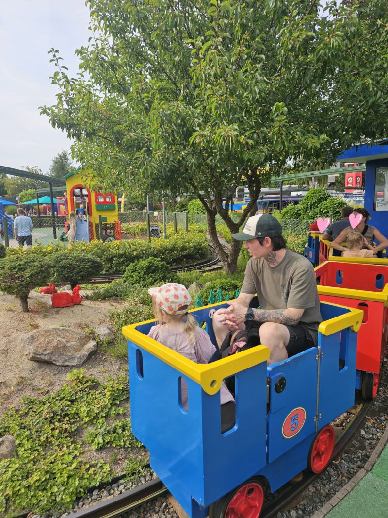 Meidän lapset ovat tottuneita matkustamaan autolla, ja ovat kaikki tehneet sitä ihan vauvasta asti. Kukaan meidän lapsista ei kärsi matkapahoinvoinnista, joten olemme päässeet sen suhteen helpolla. Autossa meillä on aina 3-vuotiaalle (tai viime vuonna 2-vuotiaalle) paljon tekemistä mukana, esim. vesimaalauskirjoja, tarra- tai magneettileikkejä, väritys- tai puuhakirjoja, fidgettejä ja tietysti myös padi, mistä voi katsoa ohjelmia tai jolla voi pelata (+ kuulokkeet). Kuunnellaan paljon myös lasten toivemusiikkia ja lauletaan yhdessä. Lisäksi mukana on pientä evästä ja juotavaa. Pysähdytään ihan jo lataustenkin vuoksi riittävän usein jaloittelemaan ja syömään, jolloin lapset pääsevät myös purkamaan energiaa leikkipuistoon (joita on lähes jokaisella pysähdyspaikalla). Hyvä kikka on myös käydä puistossa/kävellä pidempi lenkki ennen automatkaa, niin jaksaa sitten hyvin istuskella pari tuntia. Ajomatkat pidettiin maltillisina ja pyrittiin pitämään myös täysin ajottomia päiviä riittävästi reissun aikana.