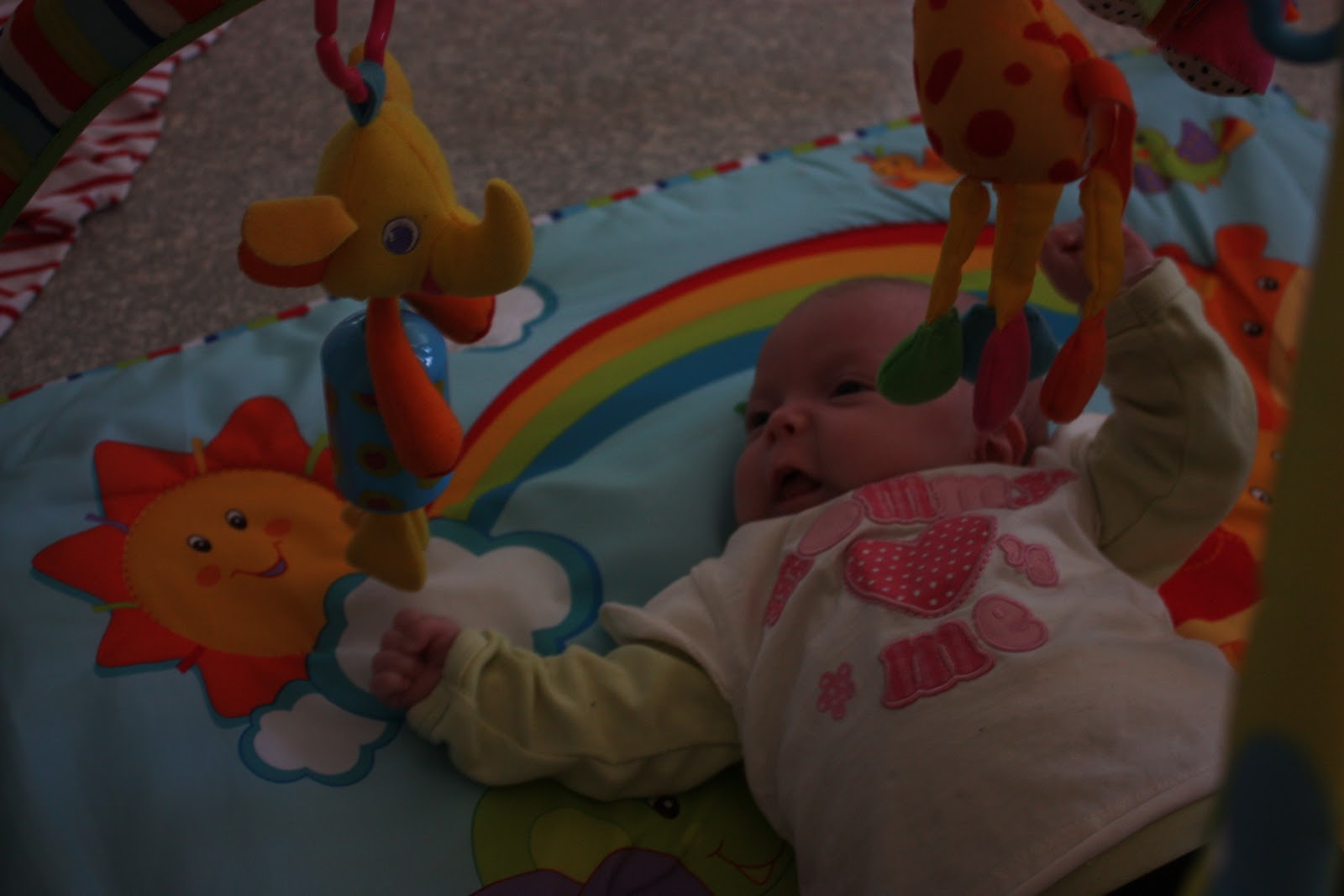 Tiara on nyt alkanu vihdoin kannattelemaan päätä kunnolla ja ihan pidempiäkin aikoja, ettei enää heti väsy niska kun on masulleen. Lelutki on alkanu kiinnostaa enemmän ja Tiara osaa jo tarttua välillä haluamiinsa leluihin, mutta suuhun niitä saa vielä harvemmin vietyä. Mutta kaikki aikanaan, oon kyllä niin ylpeä meidän pienestä ja pippurisesta tirriäisestä kun se on noin hienosti oppinu♥ Tiara on kans alkanu hymyileen suoraan kameralle, ennen sitä piti aina vähän huijata ku kamera oli pelottava mut nykyää kameraki on vissiin kaveri ku sille voi väläytellä ihania hampittomia hymyjä! Kuvista voitte myös bongata Tiaran minihaivenet joita on alkanu kasvamaan tohon päälaelle, ihanaa pientä untuvatukkaa takatukan seuraksi♥