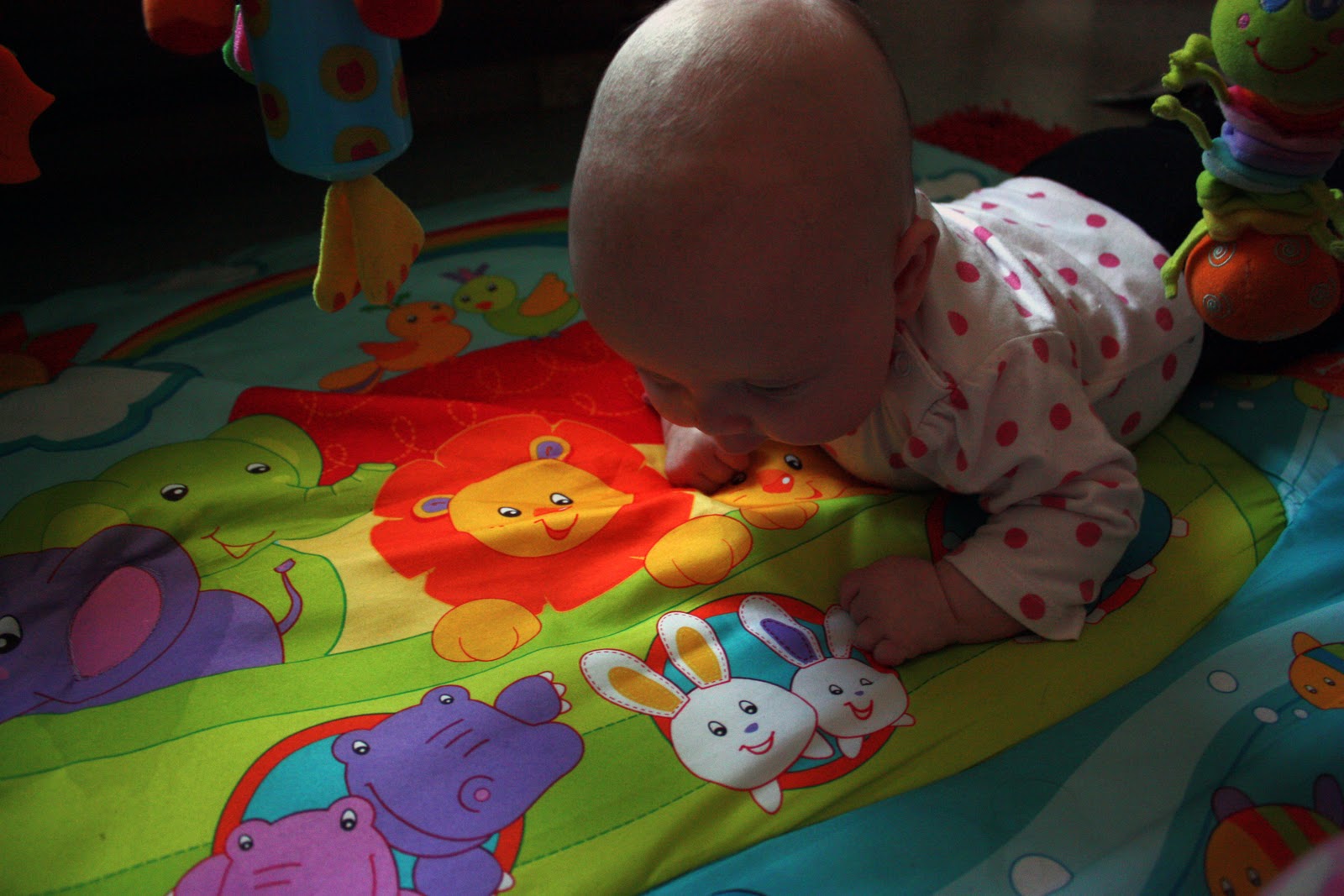 Tiaralle muuten nousi siitä rokotteesta sitten elämänsä ensimmäinen kuume. Keskiviikkoiltana neiti oli aivan tulikuuma kun koitin kädellä vaikka mulla oli itelläki korkee kuume. Annettiin sitten yksi suppo ja laitettiin neiti iltamaidon jälkeen vaippasillaan nukkumaan ja aamulla Tiara onneksi heräsi ihan pirteänä ja kuumeettomana. Onneksi meni noin nopeaa ohi! Ja kulta ei ees itkeskelly yhtään vaan oli ihan kiltisti kuumeisenakin. Se oli kyllä pelottavaa miten tulikuumaksi tuo neiti meni, mut onneksi suppo auttoi nopeasti. Hyvä että käytiin ostamassa niitä, muuten ois kyllä tullu hätä.