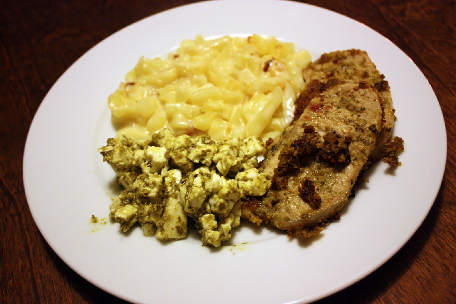 Vuohenjuustoperunoita, pestokuorrutettua possun ulkofileetä ja mozzarella-pestosalaattia♥