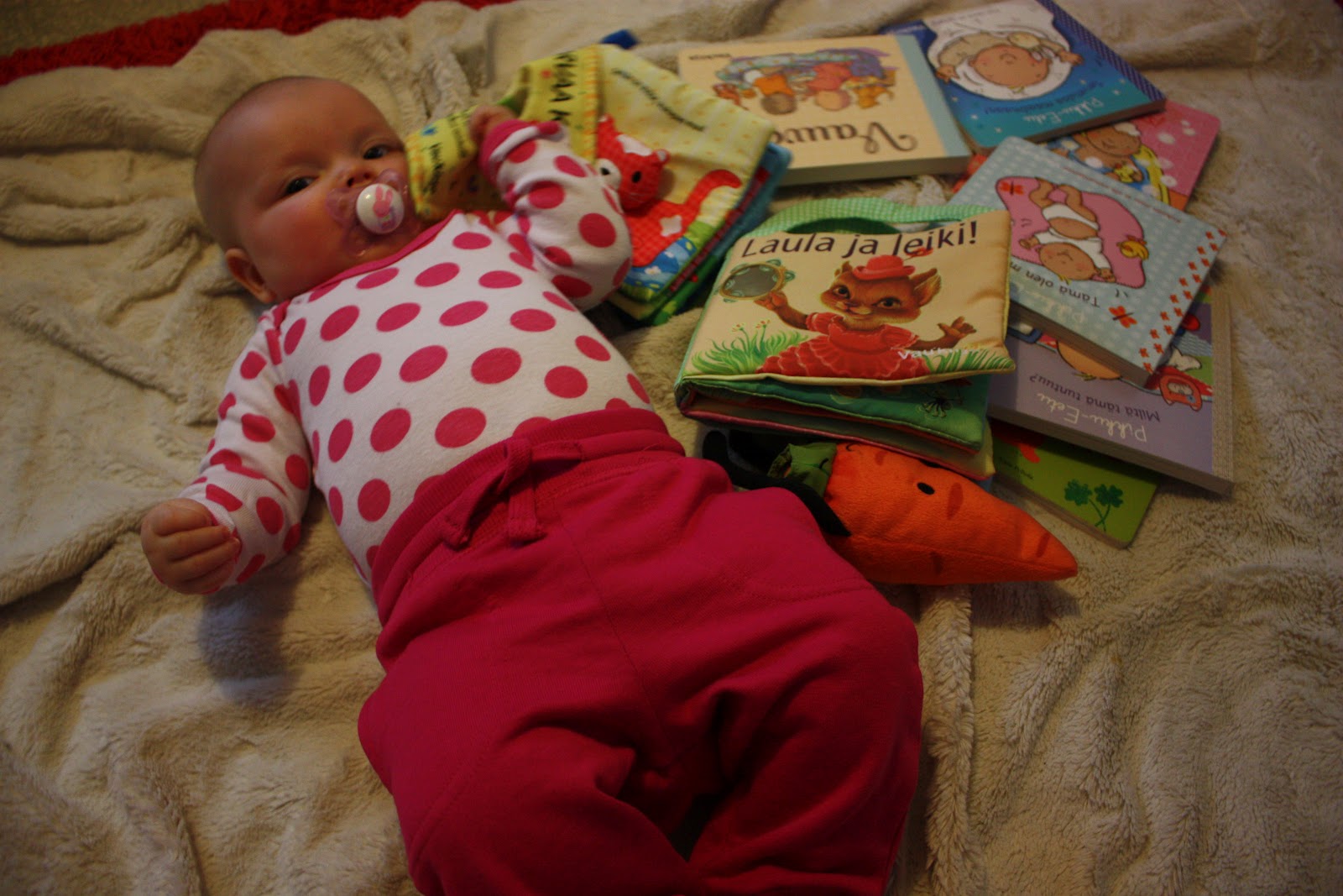 Juuri tänään Tiara ensimmäistä kertaa liikkui itse jo vähän pidemmän matkan sillä aikaa kun kävin vessassa. Jätin neidin tapani mukaan selälleen keskelle karvapeittoa olkkarin lattialle ja kun tulin takaisin Tiara ähisi masulleen yli metrin päässä peitosta, kirjahyllyn edessä ja nuoli lattiaa. Eli hyvä että siivoan nykyään useammin! Mua vaan hämmentää se että Tiara liikkuu aina pisimmät matkat silloin kun mä en nää, joten mulla ei vieläkään oikeestaan oo käsitystä siitä millä tekniikalla se liikuskelee.. Mutta olettaisin että kierimällä vuorotellen selälleen/masulleen ja sit se vissiin osaa jo käsillä vähän vetää itseään sinne suuntaan minne haluaa. Jalatkin sätkii hulluna mut ei kauheesti auta siinä ryömimisessä kun käsien ja jalkojen yhteistyökyky ei vielä oikein pelitä. Mutta ei tässä kiire oo, nytkin toi neiti on jo liian nopee mun hitaille aivoille, tarviin vielä vähän totutteluaikaa ennen kun Tiarasta tulee ikiliikkuja! Toivottavasti siis tässä kestää vielä hetki.