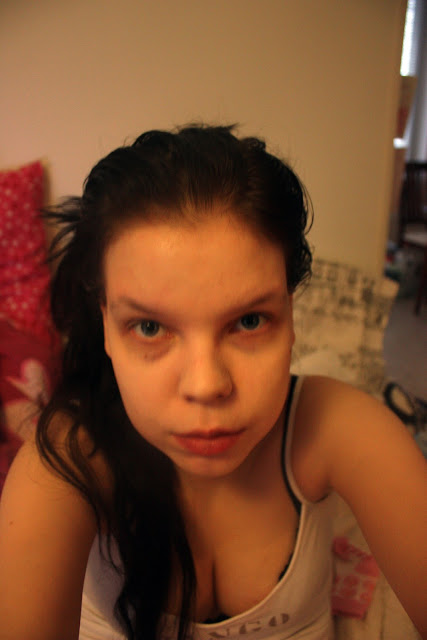 Ja siinä minä iloisen pirteänä ja raikkaana luonnonkauniilla kasvoilla, vai mitä?! Noi ihanan tummat silmänaluset kruunaa kyllä tän freesin lookin, sotkuiset ja itsekseen rastoittuneet pidennykset on myös aika kivat. Nyt ollaan kyl aika kaukana mun normaalista arkipäivälookista kun meikkikään ei oo tässä nassussa vieraillu maanantain jälkeen. Noh mutta se mulle suotakoon, jos vaikka huomenna ois viimein hyvä olo nii meikkaisin uudenvuoden kunniaksi vaikka himassa ollaankin.