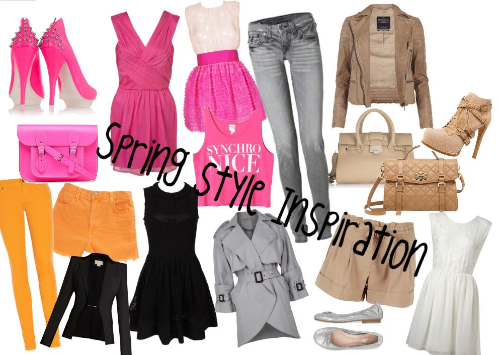 Tähän kollaasiin oon valinnut siis inspiraatiovaatteita ja -asusteita jotka vastaa aiemman kollaasin värivalikoimaa. Pinkit korkkarit; piristää harmaimmankin asun ja niiden kanssa ihanan räikeä Satchel -laukku! Pari pinkkiä räväytysmekkoa; kesän juhliin joita toivottavasti on tulossa. Pinkki lyhyt toppi farkkujen ja shortsien kanssa, ei tosin noiden oranssien. Se ois jo liikaa mullekin! Ihanat oranssit housut ja shortsit kuumiin kesäpäiviin. Voisin kuvitella että yhdistelmä oranssit shortsit, vaalea löysä läpikuultava paita ja alta vilkkuvat mustat bikinit näyttäis hyvältä biitsi-reissulla. Yhdistelmään kuuluu tietysti myös täydellinen ruskeutus jonka aion keinolla millä hyvänsä hankkia!
