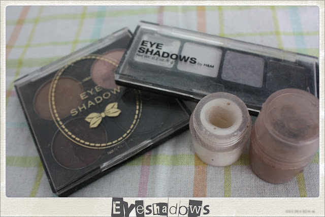 Tässä on mun ”arki” -luomivärit, kaikki taattua H&M -laatua! Mä en muuten kauheesti ostele mitään ihan halpameikkejä mutta noi H&M:n luomivärit on hintalaatusuhteeltaan mun mielestä ihan täydellisiä! Niistä tulee hyvin pigmenttiä, ne ei maksa paljoa mitään ja niitä saa kaikissa kivoissa sävyissä.