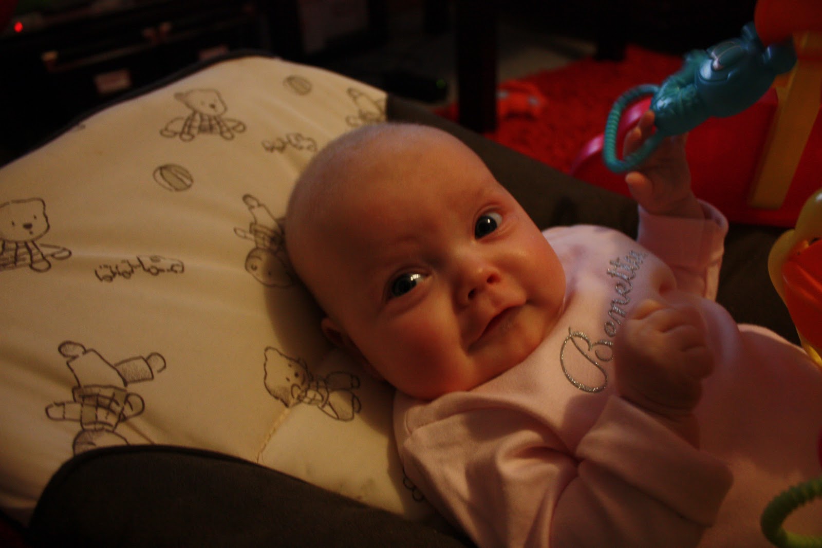 Onneksi neiti on tänään ollut oma ihana aurinkoinen itsensä niin on äidilläkin ollu helppo päivä. Se on muuten oppinut uuden lempiharrastuksen: alahuulen imemisen, mä en tiedä mikä siinä on niin kivaa mutta se mussuttaa omaa alahuultaan ja hihkuu onnesta? Ei tarvi tuttia eikä nyrkkejä kun apu löytyy vielä lähempää, omasta nassusta. Ja tätä tapahtuu siis ihan kokoajan ja pitkiä aikoja putkeen! Tässä pari kuvaa todisteeksi: