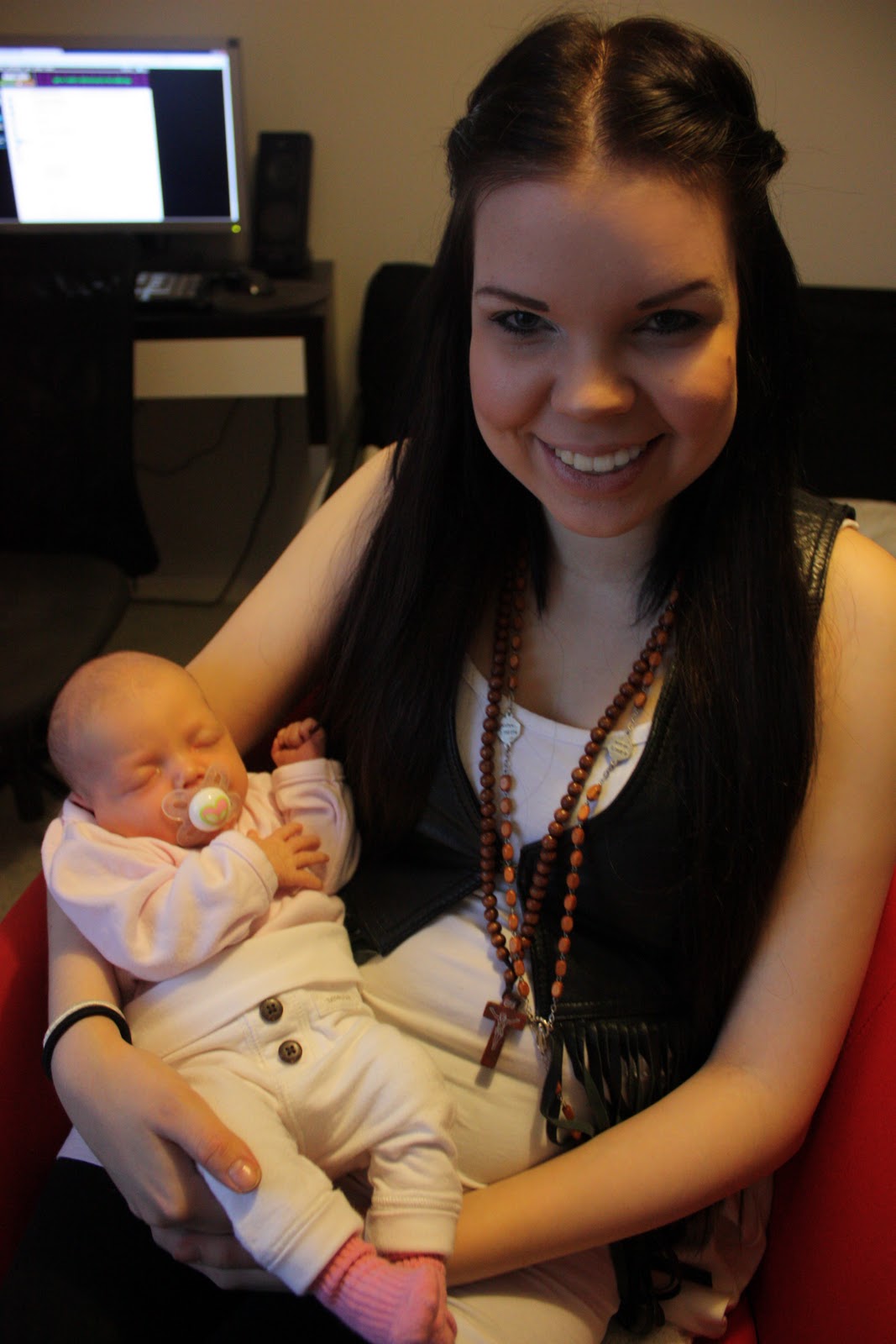Naurattaa toi ”yöllä nukkunut jo pidemmät unet”, pikkuneiti nukkui siis ke-to välisenä yönä yhden viiden tunnin pätkän josta kerroin neuvolassa. Mut tosiaan nyt neiti on nukkunu siitä keskiviikosta alkaen joka yö yhden 5-6,5 tunnin mittasen pätkän, aika mahtavaa! Eli 21.00-00.00 eka pätkä, 00.00-06.00 toka pätkä ja sit 06.00-09.00 kolmas pätkä. Toi on aika mukava rytmi ku ei tuu ku yks yöherääminen mulle! 😀 Mut saas nähdä kauanko pysyy rytmi tällasena, toivottavasti jatkuu näin.