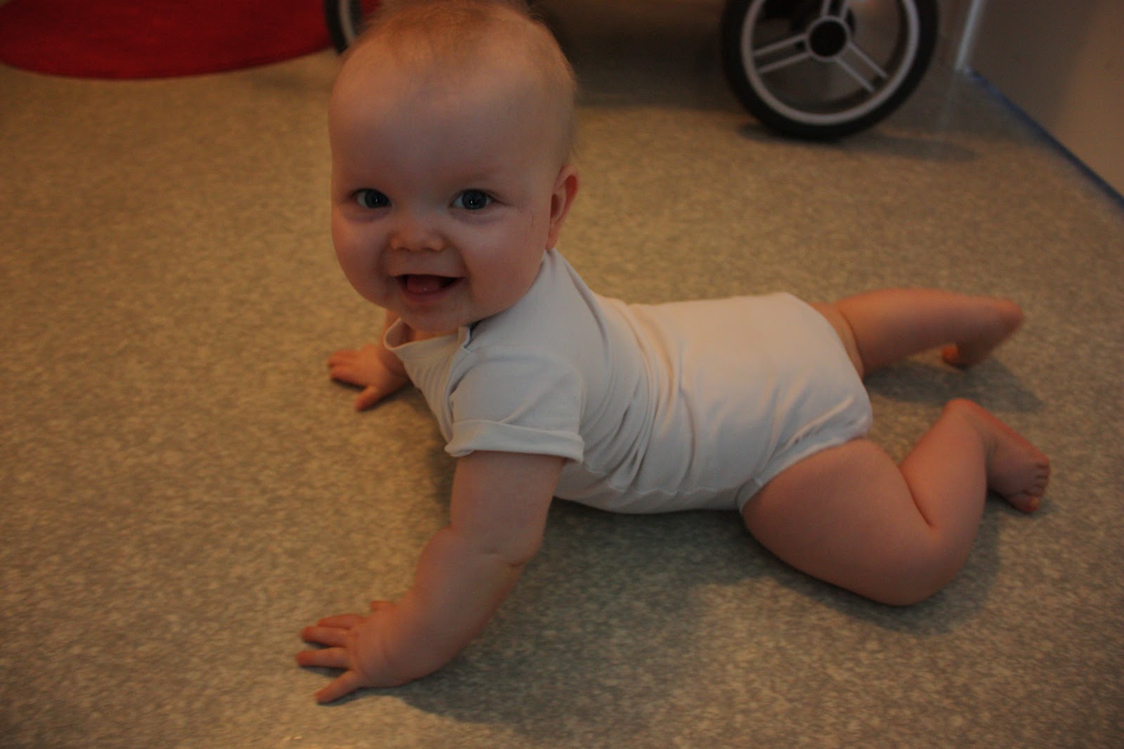 Neuvolalääkäri kehui kovasti Tiaran liikkumistaitoja kun neiti ryömi/yritti kontata/yritti karhukävellä ympäri tutkimushuoneen lattiaa. Kuulemma on ikäisekseen tosi hyvin kehittynyt ja varsinkin kun ottaa vielä huomioon kuukauden ennenaikaisuuden niin kuulemma aivan loistavasti on kehittynyt meidän neiti. Tiara hoki neuvolassa kokoajan ”vauvauvauvauvauväyväyväyväyyy” ja kysyin sitten lääkäriltä siitä että onko se mahdollista että Tiara mahdollisesti jo tarkottaisi sillä ”äidiii”:n hokemisella äitiä oikeastikin ja kuulemma on, eli jee Tiara sitten kai osaa ensimmäisen sanansa? Kyllä se sitä ainakin hokee kun se on tulossa mun luokse tai samalla kun esim. hakkaa mun jalkaa tai rapsuttaa mun käsivartta.